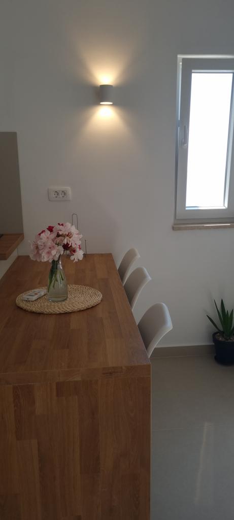 Prachtig, schoon en aangenaam appartement met 2 slaapkamers, zoals geadverteerd. De ingang was vanuit de tuin, waar je met de auto naartoe kon rijden, een paar treden direct naar het terras. Parkeren bijna bij het appartement. Het terras was erg mooi, gewoon groot, de paddleboard paste er perfect. De zon scheen er 's ochtends, aangename schaduw in de middag. De bedden in beide slaapkamers waren erg comfortabel en schoon. De keuken was ook schoon, de vaatwasser was functioneel en schoon. De vaat was schoon, maar door het gebruik van de vaatwasser was er te weinig, deze zou bijgevuld moeten worden. De badkamer was mooi, ruim en schoon. Het strand was op ongeveer 5 minuten lopen van het appartement, weinig mensen, het water was schoon, kleine kiezels, geen zee-egels, je kon het zonder schoenen doen. Iets verderop waren er nog 2 andere stranden (Soline en Vodice), waar iets meer mensen waren. Het restaurant en de winkel waren op ongeveer 5 minuten lopen van het appartement. De gastheren waren aardig en aangenaam. We vonden Drašnica en het appartement Gabriela erg leuk, we kunnen het zeker aanbevelen!