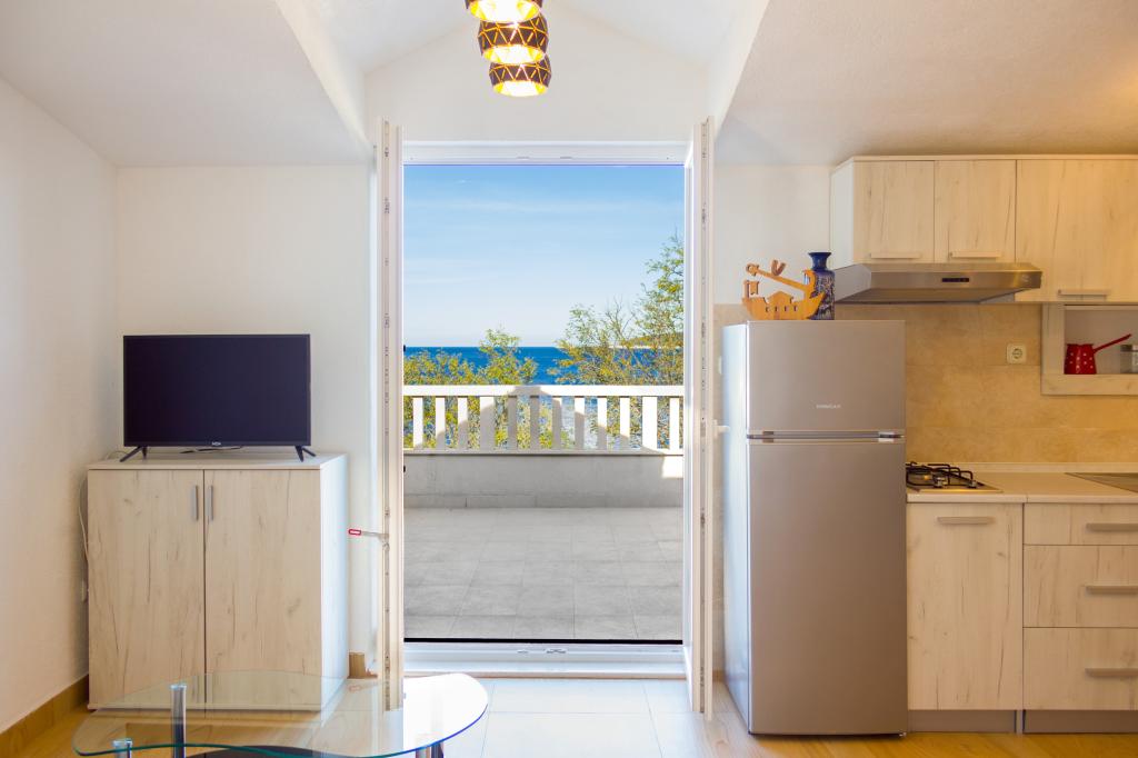 Appartementen Val en Sol liggen op het eiland Drvenik Mali, in de baai van Mala Rina, aan zee, op 70 meter van de kust. De appartementen op het eiland Drvenik Mali bestaan uit een ingerichte keuken, eetkamer, woonkamer met tv en slaapbank, slaapkamer met ventilator, terras met prachtig uitzicht en badkamer met haardroger. Beide appartementen hebben uitzicht op zee. Het is mogelijk om de gehele verdieping te huren. Appartementen Val en Sol op Drvenik Mali bieden gratis parkeergelegenheid, barbecue en gratis internet. Op het eiland Drvenik Mali vindt u een winkel met beperkte inhoud, een restaurant en een café aan het strand. Daarom raden wij u ten zeerste aan om zelf eten, drinken en andere benodigdheden mee te nemen.
