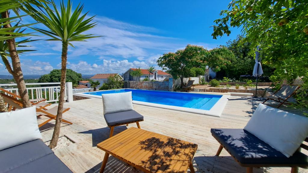 Apartments Villa Knez biedt moderne en volledig uitgeruste appartementen met zwembad, barbecue en een aangename buitenkant voor bijeenkomsten. Drvenik Mali (Ploča) is een eiland waar de tijd heeft stilgestaan. Het eiland is tam, de kust is toegankelijk zodat je het hele eiland rond kunt zwemmen. Het is wenselijk voor degenen die verlangen naar ongerepte natuur, schone zee, prachtige stranden, nachtduiken en ontspanning ver van de bewoonde wereld. Het is de juiste plek voor moderne Robinsons. Drvenik Mali is een centraal Dalmatisch eiland dat behoort tot de stad Trogir, op 10 zeemijl afstand. Er is drie keer per dag een veerbootverbinding. Het varen duurt 50 minuten. De vegetatie bestaat uit olijven, johannesbroodbomen, geurige en geneeskrachtige mediterrane kruiden. De winkel is bescheiden gevuld met basisartikelen en het is aan te raden om eten te kopen in Trogir. Er zijn geen discoclubs. Alles is dichtbij, het eiland leent zich uitstekend voor wandelingen. De appartementen zijn gelegen in het oude dorp Petomavar en zijn bereikbaar met de auto. Elk appartement heeft een beveiligde parkeerplaats