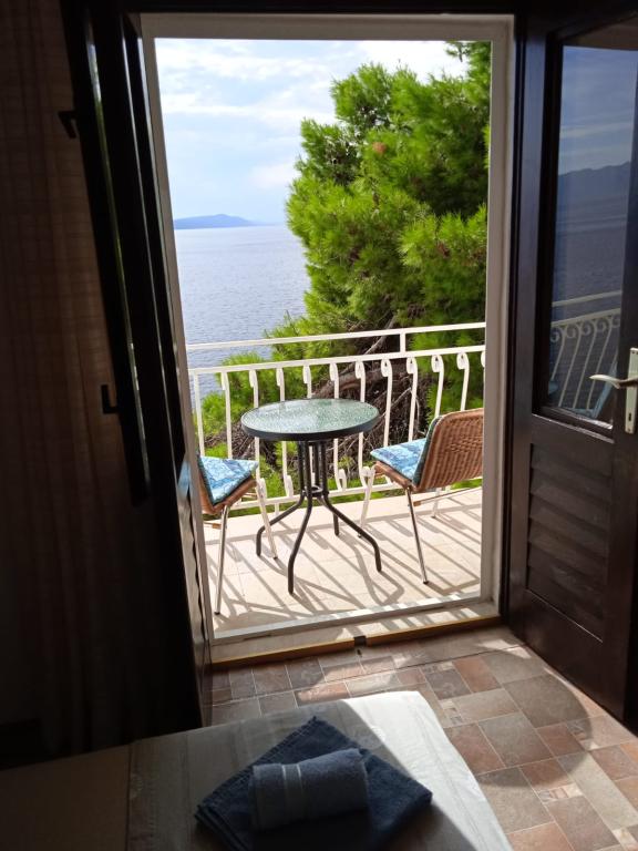 Het familieappartement (2+2) voor vier personen bevindt zich in een huis dat op de eerste rij aan zee ligt. Het appartement ligt op de tweede verdieping en heeft een aparte ingang, waardoor privacy gewaarborgd is. Vanaf het balkon en terras dat toegang geeft tot het appartement, heeft u uitzicht op zee. Parkeren kan langs de weg voor het huis waar het appartement zich bevindt. (Inbegrepen in de accommodatieprijs.) Het appartement bestaat uit twee aparte kamers en een badkamer. De keuken bevindt zich in een grotere ruimte (met balkon) en is uitgerust met servies en ander keukengerei. De koelkast bevindt zich ook in de tweede kamer. Het appartement is voorzien van airconditioning en een televisie. Er is wifi beschikbaar. Er zijn geen extra kosten aan verbonden. Het appartement is geschikt voor een gezin met twee kinderen of twee stellen.