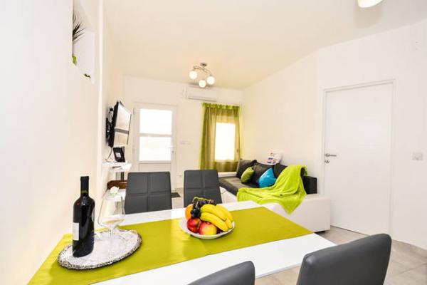 Welkom in het nieuwe, luxe, op het zuiden gelegen en zonnige eenkamerappartement met groot terras, van alle gemakken voorzien, op slechts 10-15 minuten lopen van de oude binnenstad! Het appartement heeft alles wat u nodig heeft voor een comfortabel en aangenaam verblijf, zelfs voor een langere periode (oven, magnetron, waterkoker, koffiezetapparaat, grote koelkast, vriezer, kookplaat, servies, vaatwasser, wasmachine, haardroger, strijkijzer, strijktafel, tv, wifi, airconditioning...). Gasten hebben een aparte ingang en rust. Het is ideaal voor twee personen omdat het één slaapkamer heeft met een kingsize bed met een hoog anatomisch matras, maar er kunnen nog twee extra personen verblijven omdat er in de woonkamer een bank staat die kan worden uitgeklapt tot een comfortabel bed van 160x200. Uitstekende locatie, rustig, veilig en ongeveer 10 minuten van de stad, en je hebt geen auto nodig om de oude stad te bereiken, maar voor degenen die niet van wandelen houden, is er een bushalte op ongeveer 100 meter van het appartement, en bussen 3 en 3a gaan rechtstreeks naar Pile, naar het busstation en de belangrijkste havenpier (voor uitstapjes naar de eilanden).