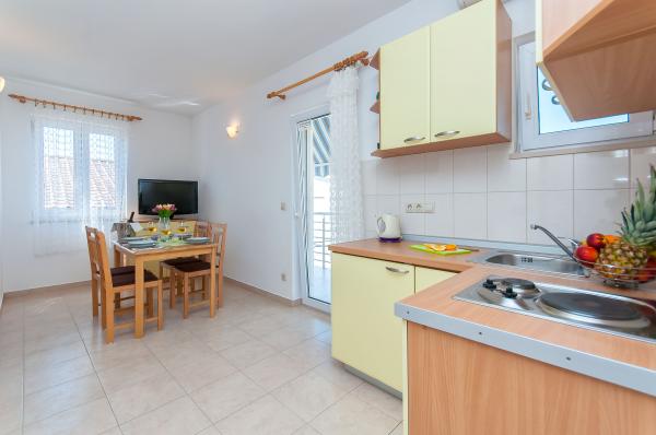 Appartementen Joško zijn gelegen in een van de mooiste kustplaatsen aan de Adriatische kust, in Duce, gelegen tussen de twee parels van Midden-Dalmatië, Split en de stad Omis. In Duce kunt u een zorgeloze en aangename vakantie doorbrengen. Duće ligt in de gemeente Dugi Rat en op slechts 1,5 km van het naburige Omis. De familie Vojnović, uw gastheren, zullen voor al het andere zorgen, zodat u volledig kunt genieten van zomerse genoegens op een van de mooiste plekken aan de Dalmatische kust ... Appartementen JOŠKO bieden accommodatie in ruime en volledig ingerichte appartementen met balkon en zee keer bekeken. Tot uw beschikking is een parkeerplaats, barbecue op een privéterrein aan zee, dat ons eigendom is.