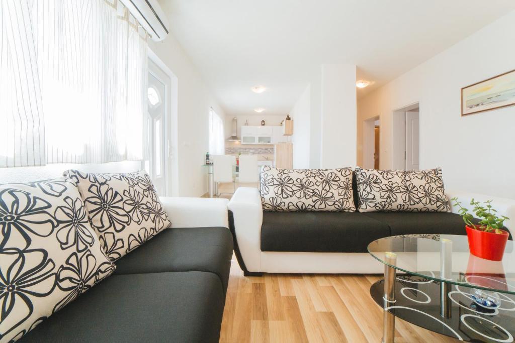 Appartementen Chiara en Marijana bevinden zich in een klein dorpje genaamd Mali Rat, op 1 km van het centrum van Dugi Rat, gelegen tussen Omis en Split. De appartementen bevinden zich in een gezinswoning op 3 verdiepingen, waarvan er twee zijn omgezet in appartementen. Omdat het huis op een heuvel ligt, kunt u genieten van een spectaculair uitzicht op de zee en de eilanden. Het kiezelstrand ligt op 400 meter afstand, en als u een zandstrand wilt, is dit de dichtstbijzijnde 5 minuten rijden naar Duce.