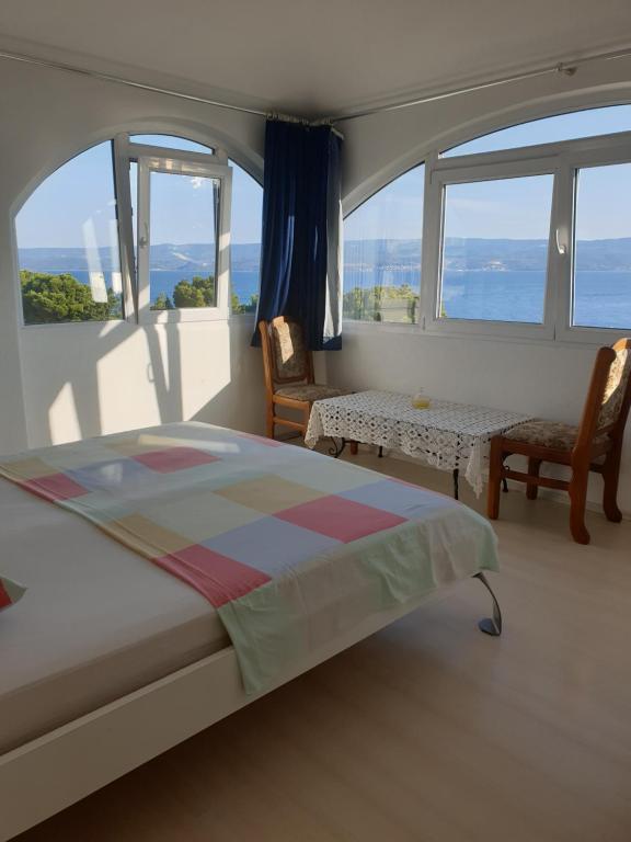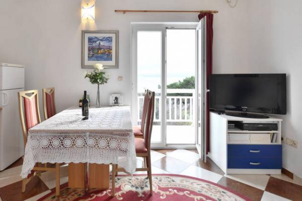 Brengt u uw vakantie in het mooiste deel van de Adriatische kust. Onze appartementen zijn gelegen in een klein dorpje, dat bekend staat om zijn mooie stranden, tussen Split en Omis. Ze bevinden zich op slechts 4 km van het pittoreske stadje Omis en 19 km van de tweede grootste Kroatische stad Split. Dankzij de ideale locatie kunt u genieten van de privacy en rust, prachtige zonsondergangen en een uniek uitzicht op de zee, weg van de stad drukte, maar dicht genoeg bij steden met een rijke traditie en cultuur. De appartementen liggen direct aan het strand en het beroemde restaurant Bracera en op slechts een korte loopafstand van het centrum van de stad, waar er vele kleine winkeltjes, bars, restaurants, markt, postkantoor, bank, souvenirwinkel. Het appartement beschikt over 80 m2, een grote keuken, eetkamer en woonkamer, twee kamers met uitzicht op zee, een badkamer en een terras met een prachtig uitzicht over Split, de Dalmatische eiland Brac, Makarska Riviera en bergen. Alle kamers hebben uitzicht op zee. Welkom!