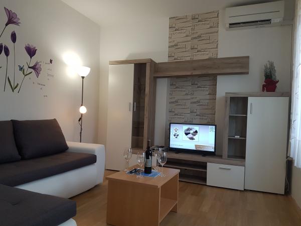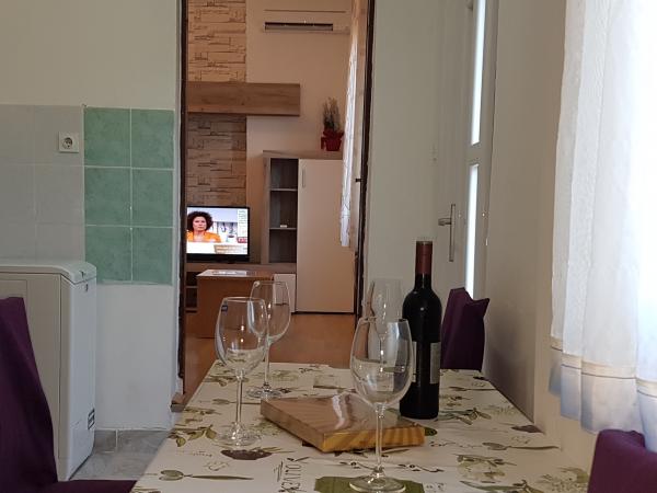 Apartments Mihatović Fažana ligt in Fazana (Regio Istra). In het seizoen 2018 bieden wij een zwembad met whirlpool bankje 7e 5x3. 5 meter 2x2 meter gedeelte voor kinderen. Het bestaat uit 4 appartementen: Appartement voor 8 personen met 3 slaapkamers 2 extra bedden Appartement voor 4 personen met 1 slaapkamer en 2 extra bedden, Appartement voor 8 personen met 3 slaapkamers 2 extra bedden Appartement voor 6 personen met 2 slaapkamers kamer 2 extra bedden. Apartments Mihatović Fažana afstand van het centrum van 300m en 300m van het strand. Inhoud: SAT / TV, air conditioning, internet wifi, roken toegestaan, huisdieren toegestaan, enz.