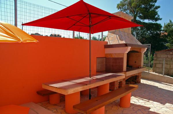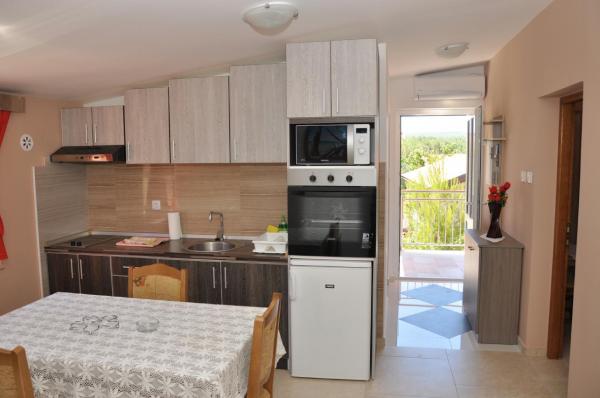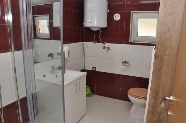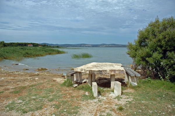 Welkom bij appartementen Dora. Huur twee afzonderlijke appartementen gloednieuwe (EPC B) zijn in Gornji Karin, in de buurt van Zadar en Novigrad. De appartementen hebben uitzicht op de zee en Velebit, liggen op 300 m van het strand, elk heeft 60 m2 en hebben een aparte ingang. Ze zijn uitgerust met hoogwaardige interieur: woonkamer en keuken, twee slaapkamers, een eigen badkamer met douche en hal. De appartementen zijn voorzien van airconditioning, wi-fi, satelliet-tv, koelkast, oven, inductie kookplaat, magnetron, bestek en drankjes. Een appartement heeft een overdekt terras en balkon. Volledig werf is geplaveid met natuursteen uit Benkovac. Op de binnenplaats zijn twee stenen tafels met eiken banken, platform voor de kinderen het zwembad, twee grote spit (gegrild) met een bureau, als onderdeel van een grote parkeerplaats.