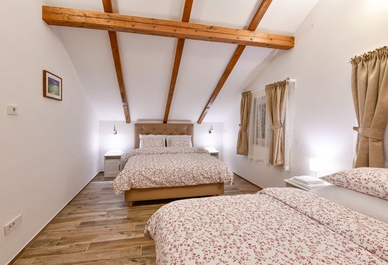 In de ongerepte natuur, bijna in het hart van Lika, in drie "oude" Lika-huizen, die elk hun eigen verhaal hebben, bieden wij traditionele inrichtingselementen met een vleugje geschiedenis en oudheid, maar ook luxe en comfort, die zo vandaag nodig om uit te rusten en te ontsnappen aan het drukke, dagelijkse leven. De uitrusting van de faciliteiten zelf is iets waar we enorm trots op zijn en bevat alles wat nodig is om de vakantie compleet en onvergetelijk te maken. We bedoelen hier vooral een wijnkelder, een taverne waar de maaltijden voor de gasten worden bereid, een verwarmd binnen- en binnenzwembad, een sauna, centrale verwarming, een busje voor transfers, de mogelijkheid tot het huren van terreinwagens, uw eigen overdekte parkeerplaats, een kinderpark, tuinmeubelen, maar ook tv, internet, airco's, wasmachines en drogers, vaatwassers, grill, heteluchtoven, haardrogers, evenals een bron van drinkwater van vroeger tot de tijd van de Oostenrijks-Hongaarse monarchie