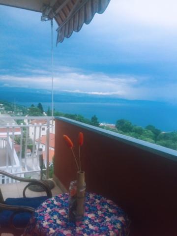 Studio, netjes en volledig ingericht voor 2 personen of 2 1. Een panoramisch uitzicht over de hele Kvarner, Cres en Krk. Parkeerplaats aan de voorkant van de particuliere woningvoorraad gratis. Het appartement heeft een eigen ingang. en hebben hun eigen privacy op het terras. Het is wenselijk dat de jongeren, omdat het is gelegen op de 4e verdieping van een gebouw zonder lift. Slechts 5 minuten met de auto naar het strand in Icici.