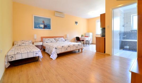 Luxe appartement volledig ingericht, nieuw gebouwd in 2008, evenals luxe kamer met een fornuis en een koelkast. . De appartementen hebben een aparte ingang BUNGALOW Jović: Bungalow Jovic is gevestigd in een oud stenen huis gebouwd in 1952 en heeft muren 60 cm dik en is de perfecte keuze voor warme zomeravonden. In 2015 bungalow is volledig gerenoveerd en ingericht met stijl en aandacht voor elk detail. Rustieke stijl en toch voldoet aan alle behoeften van de moderne mens. De ruimte zelf is smaakvol ingericht en straalt luxe en frisheid en eenvoud. Ik bungalow is gescheiden van de andere gasten en heeft volledige privacy. Gasten kunnen de prachtige tuin te gebruiken met mediterrane planten en gedomineerd 50 jaar oude palmbomen. Ook is er een overdekt terras met open haard grill en de schaduw van de druivenranken. Twee minuten lopen van het huis is het strand Icici, die bekend staat als één van de mooiste in het gebied. Het strand heeft een Blauwe Vlag, die zuiverheid en de uitrusting van het strand faciliteiten zoals garandeert; -saver toilet, caf