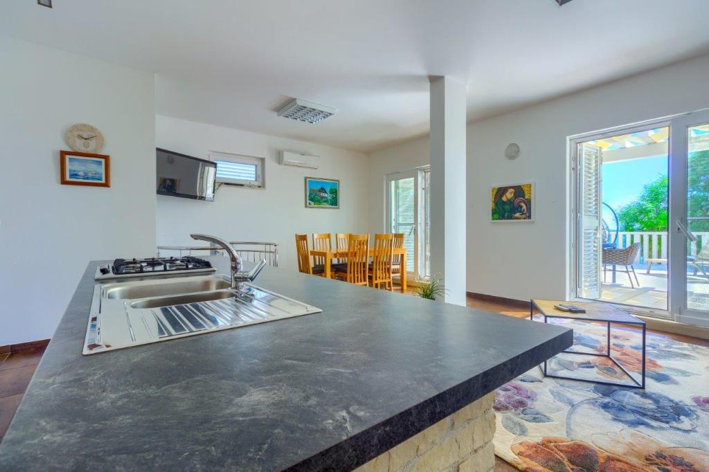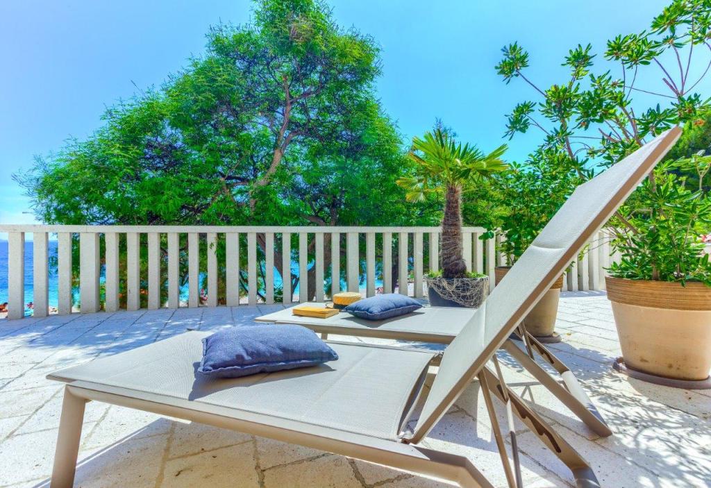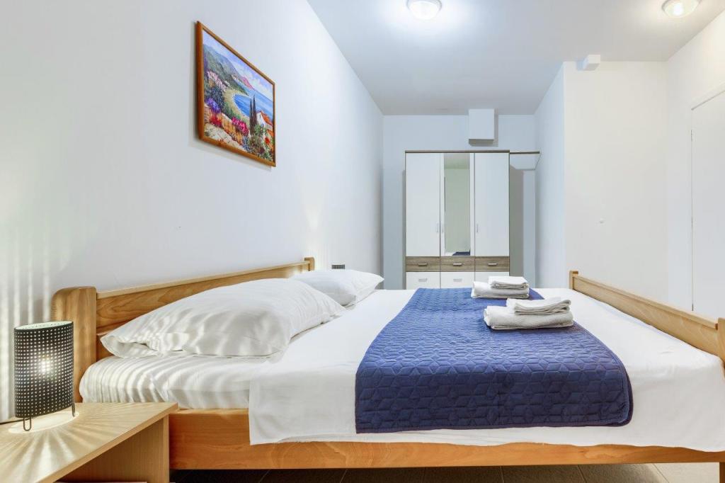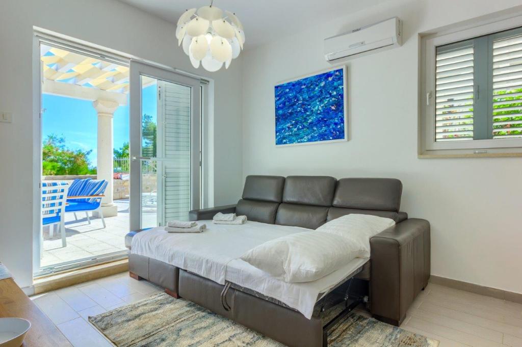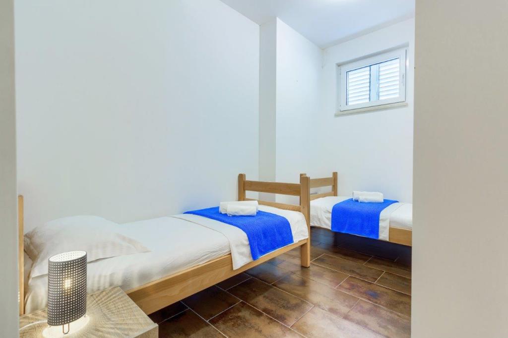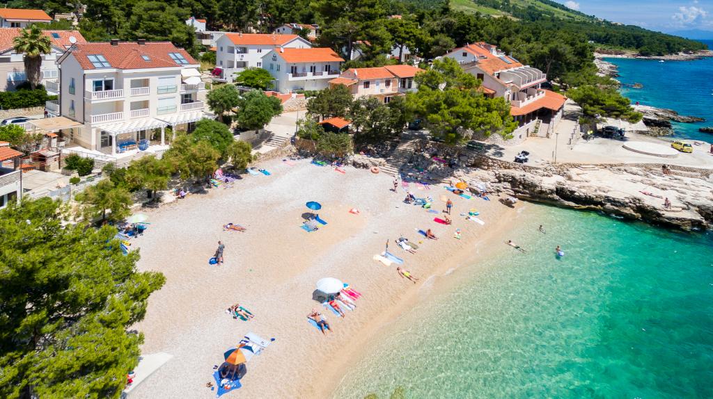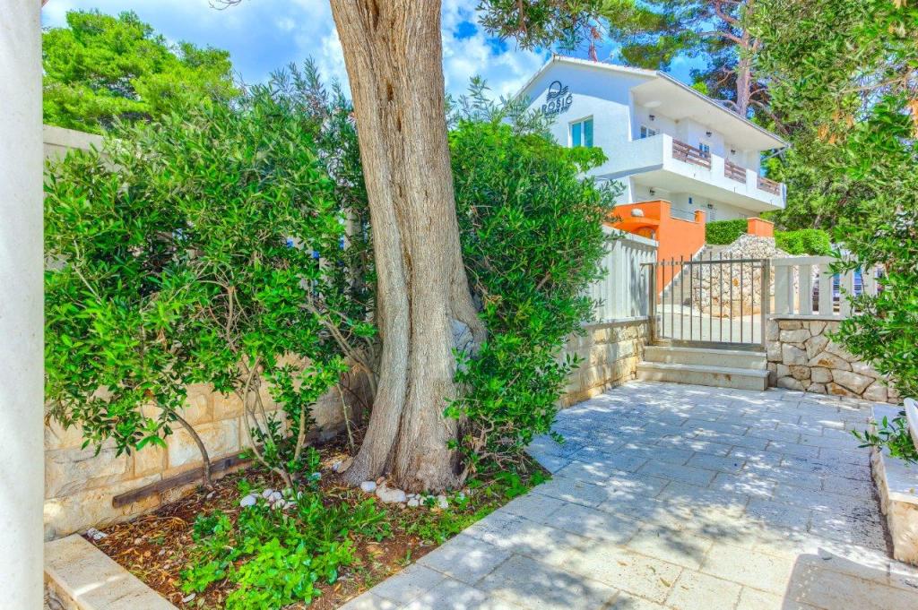 Nieuw gebouwde en modern ingerichte appartementen bevinden zich direct naast het strand in het rustige stadje Ivan Dolac. Appartementen Unit 1 en Unit 6 zijn voor 4 personen, ze bestaan uit een slaapkamer met een tweepersoonsbed 160 x 200, een badkamer met douche, een keuken en een eetkamer, en een woonkamer met SAT-TV en een slaapbank, en een terras met een prachtig uitzicht op het strand, de zee en de eilanden. Appartementen P1 en P2 zijn voor 8 personen, ze bestaan uit 3 slaapkamers en een slaapbank in de woonkamer, 2 badkamers, een volledig uitgeruste keuken met vaatwasser, een eetkamer en een eettafel op het grote terras ervoor met uitzicht van de zee. Appartement P2 heeft een grotere oppervlakte dan P1, omdat het een volledige slaapkamer en badkamer op de verdieping eronder heeft. Een restaurant en cafés liggen op slechts 20 meter afstand en een winkel op 100 meter van het appartement. Hoewel het huis in het centrum van dit kleine toeristische stadje ligt, biedt het volledige rust en privacy omdat de gasten voornamelijk gezinnen met kleine kinderen zijn die genieten van de prachtige stranden en de kristalheldere zee.