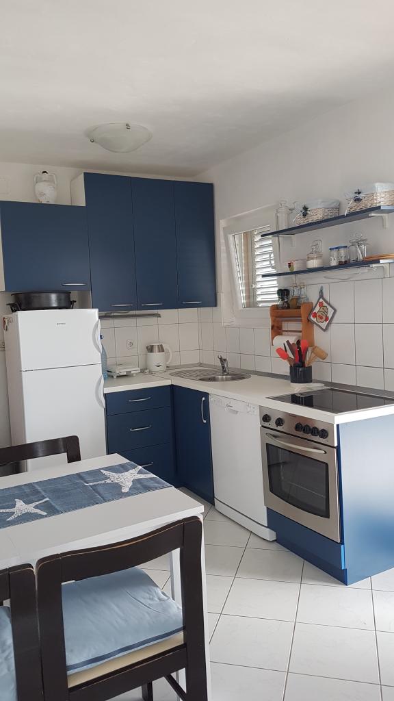 Volledig uitgerust klein vakantiehuis in een rustige buurt van Mali Iž, gelegen op 10 minuten lopen van de veerhaven Bršanj en op 15 minuten lopen van het centrum en de haven van Komoševo. De faciliteit ligt op ongeveer 250 meter van de zee en op 70 meter van de hoofdweg. Een voetpad leidt naar het gebouw en er is parkeergelegenheid langs de weg. Het huis is gelegen in een tuin van olijven en mediterrane planten, aangrenzende voorzieningen zijn op ongeveer 100 m afstand, de eigenaar verblijft niet in het huis, wat zorgt voor rust en volledige privacy, en het strand, de markt, het café ..... is op een afstand van 5 tot 10 minuten lopen. De woning heeft een oppervlakte van 69 m2 - keuken en woonkamer, slaapkamer en badkamer. De keuken is volledig uitgerust met alle benodigde apparatuur en keukengerei, slaapkamer bed 160x200, woonkamer heeft twee bedden 90x200, led-tv, dvd, radio en bordspellen. De keuken en woonkamer komen uit op een terras van 35 m2, met een prachtig uitzicht op zee. Het terras is overdekt en uitgerust met elektrische grill, tuinmeubilair en ligstoelen.