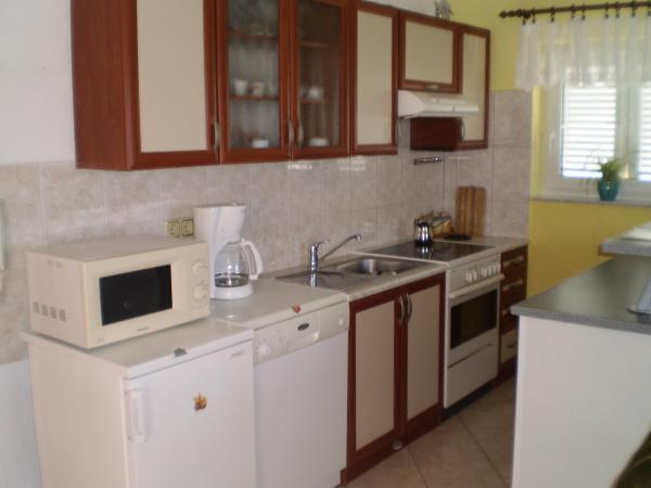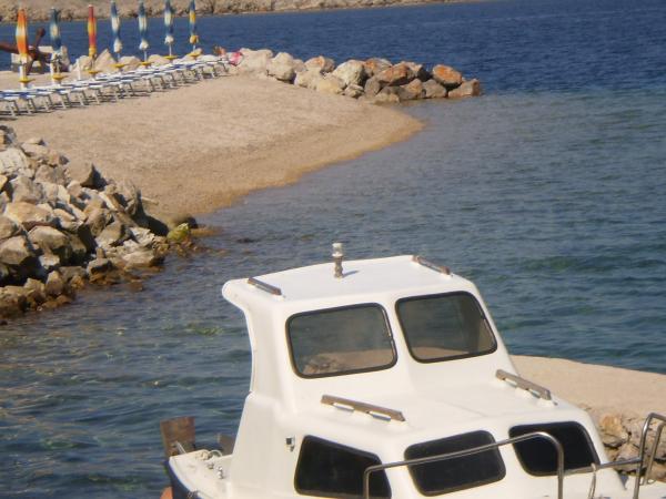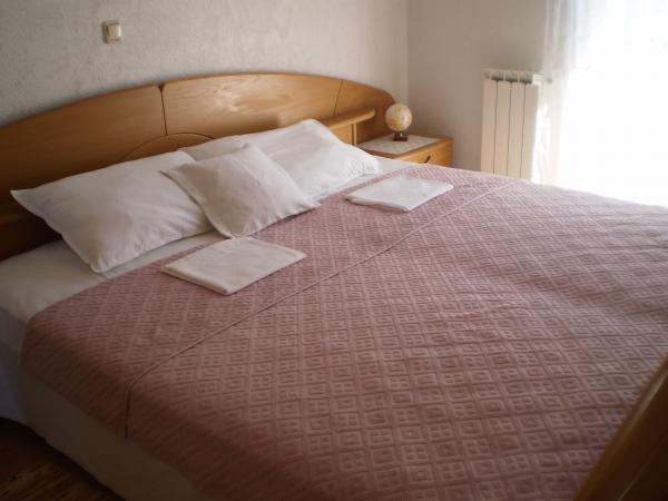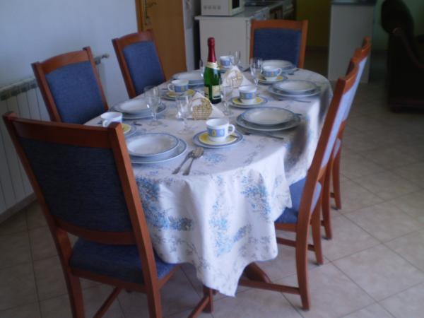 Het appartement is gelegen in een gezinswoning op de tweede verdieping. Het oppervlak van 100 vierkante meter, heeft drie slaapkamers en twee extra bedden, een grote woonkamer. Het appartement beschikt over tv, satelliet, Wi-Fi, airconditioning. Het heeft een groot terras met uitzicht op de zee, grote binnenplaats met eigen parkeerplaats. Het appartement bevindt zich op 200 meter van de zee. . .