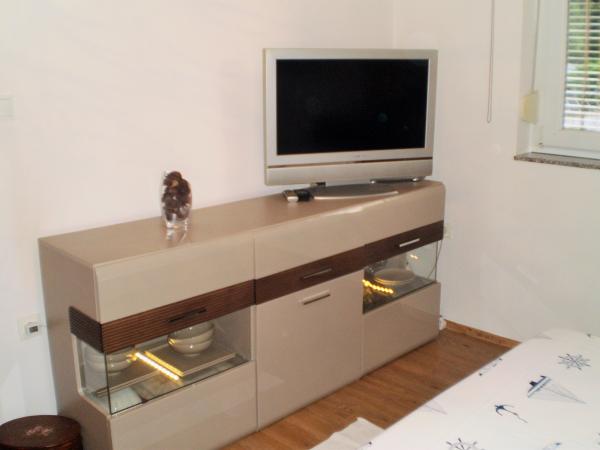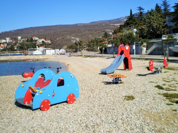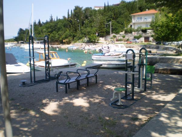 Jadranovo is een toeristisch stadje gelegen negen kilometer van de stad Crikvenica. 25 juli het feest van de patroonheilige, St. James de apostel. Gelegen aan de zonnige noord Adriatische kust, staat bekend om zijn vele stranden, baaien en kristalheldere zee, een soort natuurverschijnsel en geneeskrachtige modder in de baai Lokvišće. De baai Lokvišće vond een groot aantal gebroken amforen, die het bestaan van een kleine haven en het magazijn aangeeft. Apartment 1 (43qm) bevindt zich op de begane grond. Het bestaat uit een volledig uitgeruste keuken, woonkamer en badkamer. De badkamer heeft een toilet, douche en wastafel. De keuken en woonkamer gemeenschappelijke ruimte, waar sprake is van een slaapbank voor 2 personen. slaapkamer 2 personen. Het appartement is voorzien van airconditioning en uitgerust met satelliet TV, DVD, magnetron en föhn. Gasten hebben de beschikking over tuinmeubelen met een barbecue. 2 parkeerplaatsen. Het tweede appartement ligt op de eerste verdieping (75m2). Het heeft een balkon