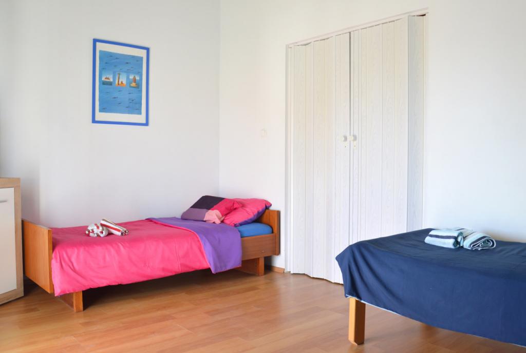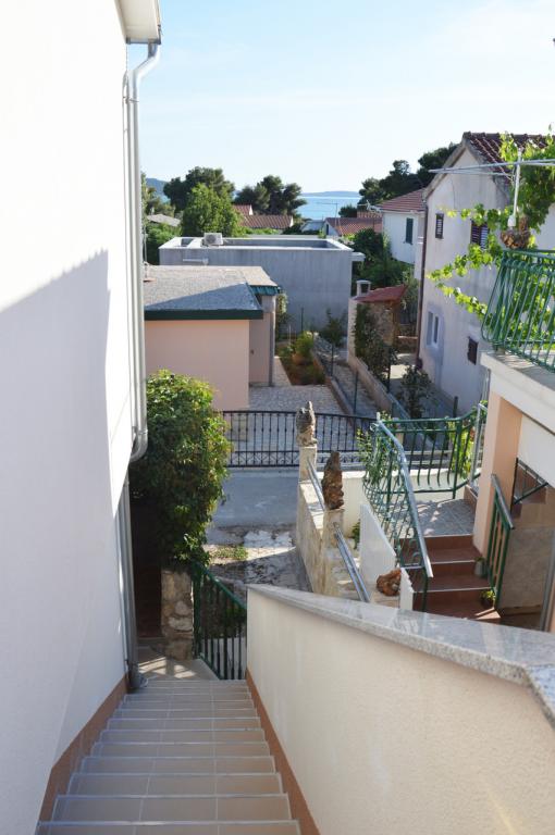 JADRIJA, rustige, kleine plaats in een dennenbos met veel schaduw, geurige lucht, verschillende soorten strand- perfecte vakantie van ouders en kinderen, atleten ... Jadrijska strand is ook bekend om het grote aantal watersport activiteiten die worden aangeboden aan bezoekers. Een ideale plek voor surfers en windsurfers, dicht bij de fietspaden. Het is gelegen tussen Sibenik en Vodice, tegenover het eiland Zlarin en Prvić, en Fort St. Nicholas, en in de buurt van 2 NP. Krka en Kornati. Wanneer u in Jadrija niet nodig om een auto te gebruiken, want alles is dicht; supermarkt, pizzeria, restaurant, bars, een speeltuin ... Het centrum van Sibenik, in de zomer rijden lijn boot, 15 min. de mooie gracht st. Ante. App. heeft een aparte ingang, 70 m2 met terrassen om van het uitzicht te zien. Het heeft twee aparte kamers; een slaapkamer met een bed en een andere kamer met 2 bedden, toalet- badkamer toilet, keuken met eethoek, en 3 terrassen met tafel en stoelen, ligstoelen, (voorkant, achterkant en zijkanten), TV-SAT, airconditioning, wi-fi .. .. Het strand is 80 m, 2-3 minuten. Door de schaduw.