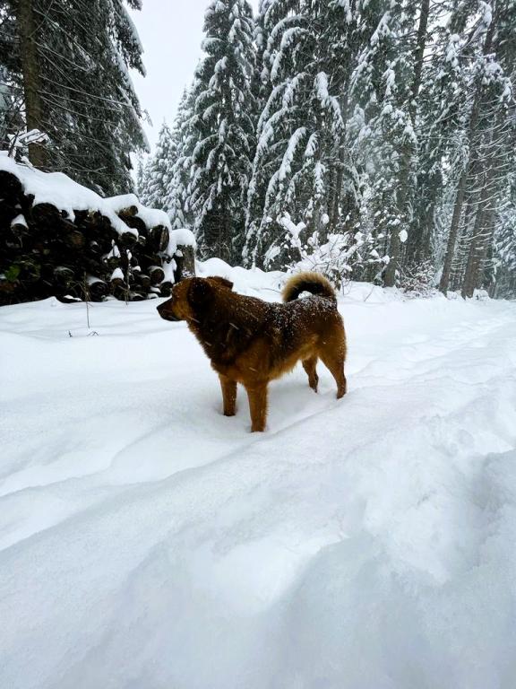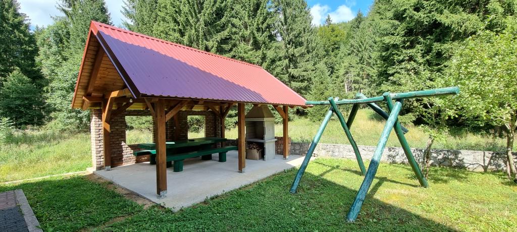 In de prachtige natuur direct naast het bos, een comfortabel appartement voor wie even wil ontsnappen aan de drukte en wil ontspannen in de natuur. U kunt gebruikmaken van een overdekte barbecue met een tafel, stoelen en houten schommels.