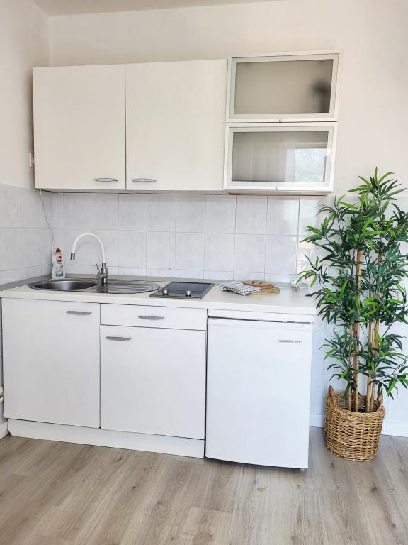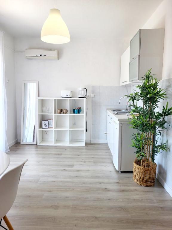 Het complex met studioappartementen is gelegen in een rustige omgeving met voornamelijk eengezinswoningen, op ongeveer 400 meter van de zee en het eerste strand en op 500 meter van het centrum.