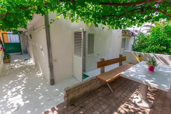 We boekten dit mooie kleine appartement last minute en waren erg blij dat het net zo mooi als de foto's suggereren te vinden. Het appartement ligt in een mooie beschutte, private baai met kalm water en mooie zwemmen. Geen toeristen, maar de lokale bevolking met af en toe een duik of gezelligheid in de avondzon. Dobberende bootjes, water en een perfect gelegen ponton te maken voor een ontspannen omgeving. Borjena, het appartement eigenaar, woont naast de deur en het was een fantastische en zeer royale gastheer. Elke dag dat ze zou ons lokale lekkernijen, zoals vers gegrilde sardines, vijgen, sappige perziken en zelfgemaakte abrikoos taart. Heerlijk! Hoewel ze woont vlakbij het appartement we altijd het gevoel dat we kregen ruimte en privacy tijdens ons verblijf. Hoewel Borjena spreekt nauwelijks Engels, er was altijd wel iemand bij de hand (of Google Translate) om ons te helpen uit te vinden alle informatie die we nodig hadden. Het appartement zelf was erg schoon en had alles wat je 'd nodig heeft voor een week ' s vakantie. We waren zonder transport, maar de bus was erg handig (hoewel de weg vrij luid) en het is gemakkelijk te Split en Omis te komen - ongeveer 20 minuten. Er zijn slechts een paar van de restaurants in de omgeving, maar Split en Omis zijn tal van fatsoenlijke plaatsen om te eten. Hoewel we vaak gebakken vis en groenten op de grill buiten. We vonden ook de locatie een geweldige plek om te zijn gebaseerd voor het verkennen van de meer toeristische eilanden Brac en Hvar. Als u op zoek bent naar een ontspannen en authentieke Kroatische vakantie, dan is dit de plek om te gaan!