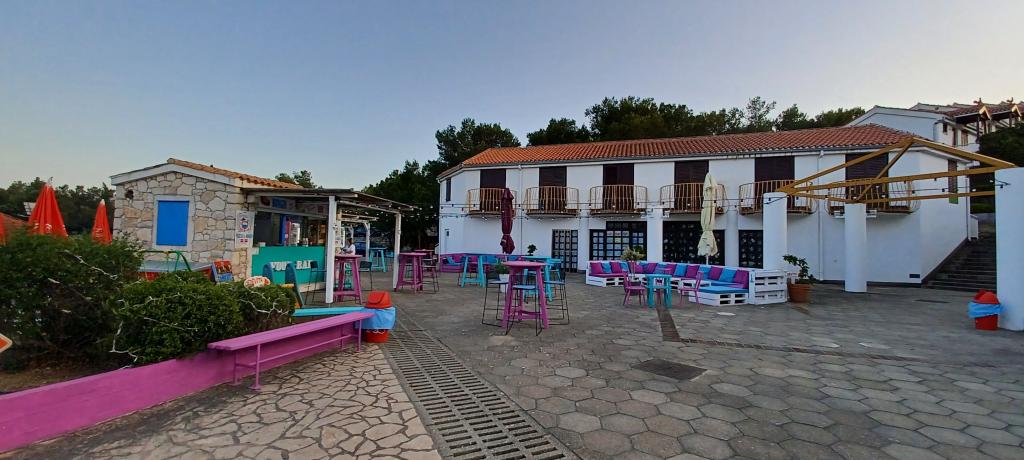 Onze stacaravan bevindt zich in het toeristenoord Jezera Village. Het ligt in een rustig deel van het dorp, omgeven door een dennenbos. Het gebouw bestaat uit 2 tweepersoonskamers (1 x aparte bedden + 1 x tweepersoonsbed), woonkamer, keuken en badkamer en een ruim terras (25 m2). Het huis is van alle gemakken voorzien, met 2 tv's (terras en woonkamer). Ga op het terras zitten en geniet van meditatief genieten van de geuren en geluiden van Dalmatië met een licht briesje. U bereikt het kiezelstrand op 100 meter afstand na een langzame wandeling van 1 minuut door de schaduw van pijnbomen. Op het strand zijn douches, gedeeltelijke beschutting tegen de zon, ligstoelen te huur en een waterpark voor de allerkleinsten. Binnen de camping vindt u een minimarkt, restaurant, bar, wasserette, pizzeria en alles wat u nodig heeft voor een zorgeloze vakantie.Er worden dagelijks animaties georganiseerd (in het seizoen) en excursies zijn mogelijk in de camping. Sportfaciliteiten omvatten voetbal-, basketbal- en tennisbanen, tafeltennis en minigolf. De camping beschikt over een eigen jachthaven voor het plaatsen van boten (tegen betaling)