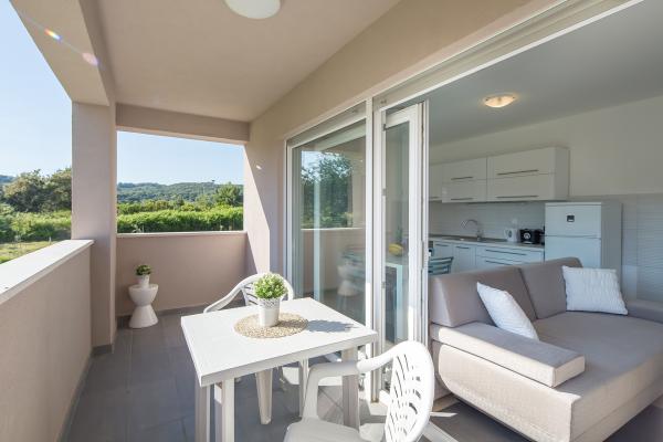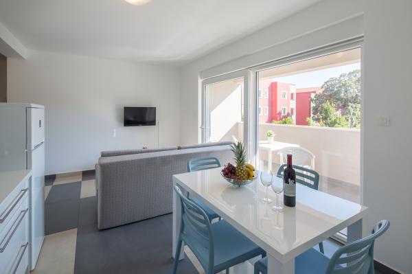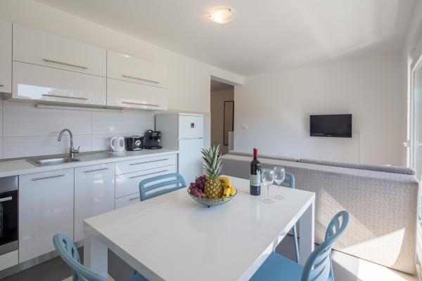 Modern appartement, volledig nieuw ingericht in een mooie en rustige deel van het zonnige eiland. De faciliteit bestaat uit 3 appartementen. Twee van de appartementen zijn 50 vierkante meter en bieden accommodatie voor maximaal 4 personen (2 2). Ze bestaan uit een slaapkamer met een ruim tweepersoonsbed, keuken, eetkamer en een slaapbank, badkamer met bad en een groot balkon met een tafel en stoelen. Het derde appartement van 70 vierkante meter is gelegen op twee verdiepingen en biedt accommodatie voor maximaal 6 personen (4 2). Het bevat twee kamers. In een kamer is een ruime tweepersoons bed in een andere kamer op de eerste verdieping twee enkele bedden en een groot terras met ligbedden en uitzicht op zee. Het appartement heeft een keuken, eetkamer en een slaapbank, een badkamer met bad en een balkon met een tafel en stoelen. Beschikbaar voor de gasten: - Gratis internet - Kabel-tv met meer dan 200 programma's - Volledig ingerichte keuken - Air conditioning - ijzer - Föhn - Gratis parkeren WELCOME !!!!