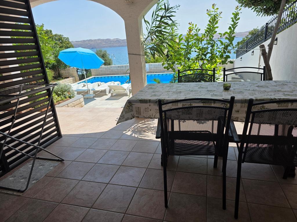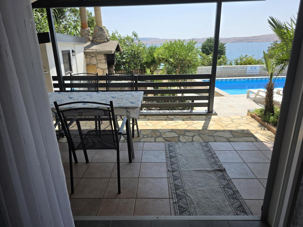 We hebben hier twee heerlijke weken kunnen doorbrengen. Het appartement is groot genoeg voor een gezin van 4 en goed uitgerust. Alle apparaten, van broodroosters tot televisies, zijn van hoge kwaliteit. Het meubilair was geweldig en er was verse was na een week. De badkamer is zeer functioneel met de gelijkvloerse douche. Er is ook een wasmachine, extra handdoeken, enz ... Er ontbreekt niets. Het buitenterrein en het zwembad zijn zeer goed onderhouden en schoon. Er zijn ligstoelen en parasols aanwezig, alles wat je nodig hebt om je goed te voelen. Het zwembad was niet alleen een hoogtepunt voor de kinderen. Ook voor ons ouders was een korte wandeling in het koele water zeer welkom en we hielden de kinderen altijd in de gaten. Het is slechts een paar stappen naar de zee. Er was vrijwel altijd ruimte en maar weinig mensen. Goede toegang tot het water en schoon. We konden onze SUP "parkeren" op een kleine ligplaats bij de buitendouche. In de tweede week hadden we wat pech met de luidruchtige buren. Maar behalve de mensen kan niemand daar iets aan doen. We maakten twee dagtochten naar het nationale park en naar Zadar, die beide ongeveer 2 uur rijden waren. In de directe omgeving zijn er kleine winkels voor de benodigdheden en enkele goede restaurants. Karlobag, op 5 km afstand, is de volgende kleinere stad met een klooster, andere restaurants, politie en medische diensten. Tot slot wil ik onze gastheer, de zeer warme Darinka, heel erg bedanken. Ze zorgde echt heel goed voor ons. We komen zeker terug!