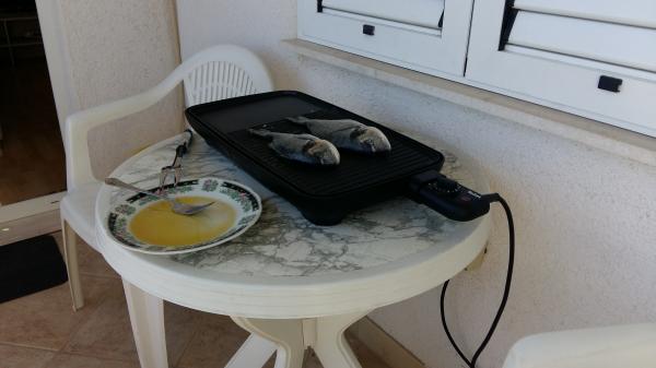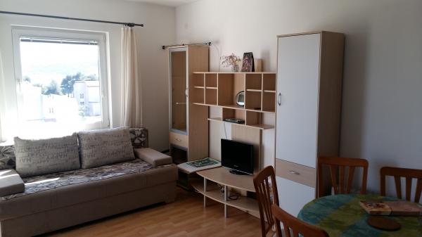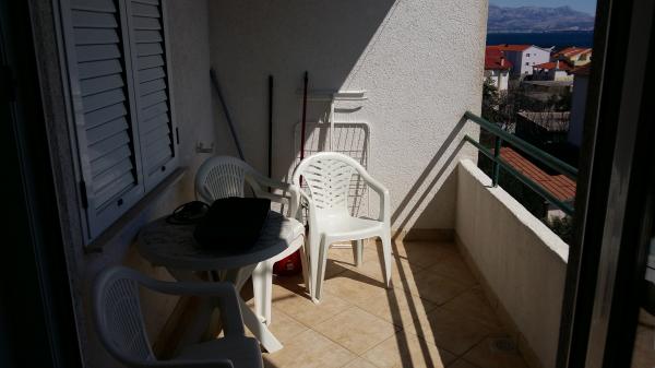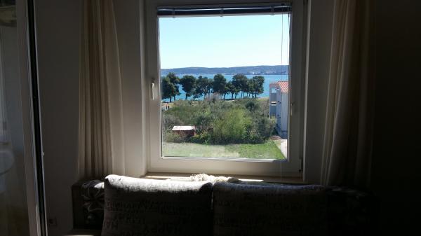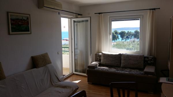 Het appartement bevindt zich op de derde verdieping van een woongebouw in Kaštel Štafilić, district Bile, in de buurt van de Resnik. Het kijkt uit op de zee en biedt een prachtig uitzicht op de hele baai van Kaštela, Split en de nabijgelegen eilanden. Het is gelegen op een rustige locatie aan het einde van de straat, dus er is geen lawaai. Het appartement van 45m2 bestaat uit een hal, badkamer, slaapkamer, grote woonkamer met keuken en loggia. In de slaapkamer staat een groot bed voor twee personen, in de woonkamer staat een grote slaapbank die verandert in een groot bed voor twee personen en een andere kleinere driezitter. De keuken is volledig uitgerust, koffiezetapparaat, vaatwasser, oven. Op de loggia is het mogelijk om een elektrische grill te gebruiken. Het appartement heeft een föhn, een stofzuiger en een strijkijzer. Het gebruik van het klimaat wordt niet extra betaald.