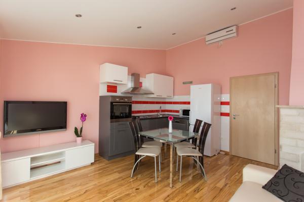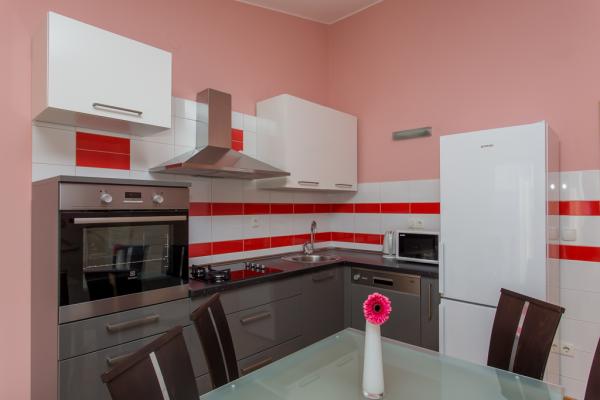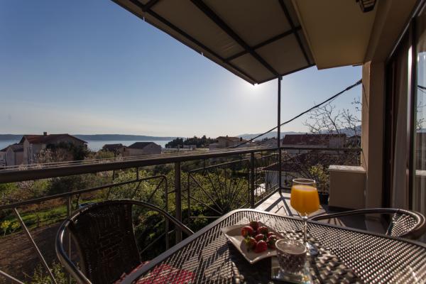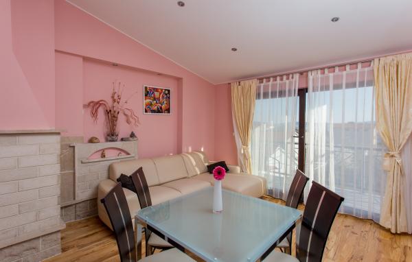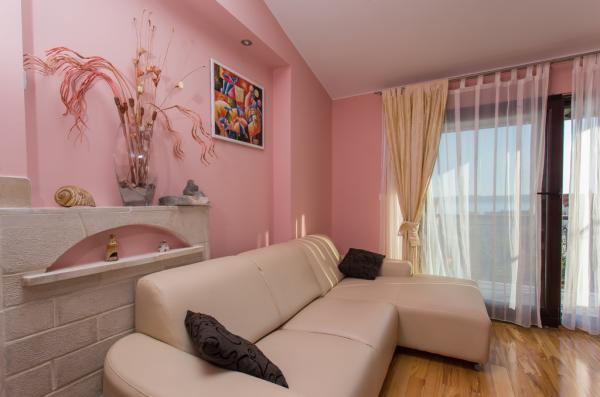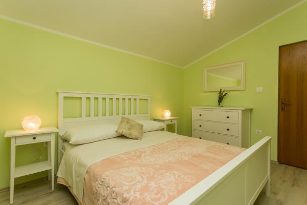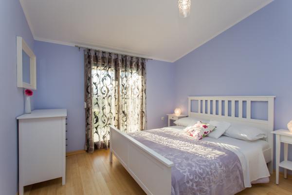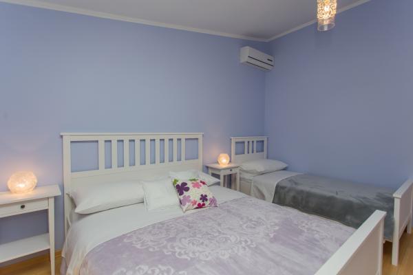 Volledig ingericht appartement voor 5 personen in een rustig deel van Kastel Kambelovac gelegen op slechts 3 minuten lopen van het strand en restaurants. Het appartement is gelegen op de tweede verdieping en biedt uitzicht op de zee. De grootte is 65m2, heeft twee slaapkamers, een woonkamer, keuken, eetkamer en twee terrassen en een badkamer. De eerste slaapkamer heeft een groot tweepersoonsbed en een eenpersoonsbed. De tweede slaapkamer heeft een dubbel bed voor twee personen. De keuken is volledig uitgerust met alle benodigde keukengerei en apparatuur (magnetron, waterkoker, staafmixer, koffiezetapparaat.).