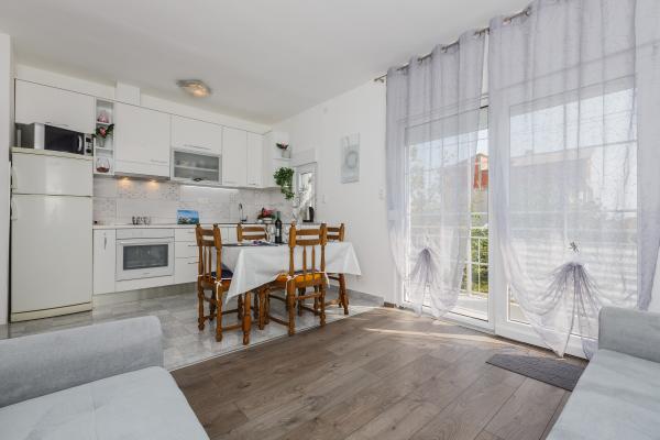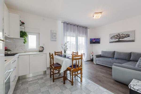 Inlusief wel Toeristenbelasting.Gasten hebben toegang tot privéparkeergelegenheid en WiFi. Parkeren en WiFi zijn bij de prijs inbegrepen. Appartement Nina ligt op een perfecte locatie, u kunt kijken naar de afstand: - plaats op het strand (400 m) - restaurant (60 m) - Busstation (350 m) - Hoofdweg (50 m) - markt (100 m) - Split Airport (6, 9 km) - Split-veerboot (17, 1 km) - Oude binnenstad van Split (16, 8 km) - de oude binnenstad van Trogir (12 km)