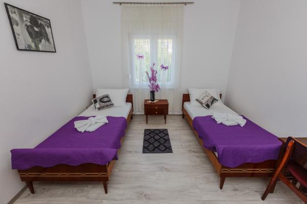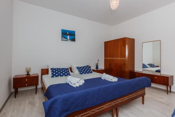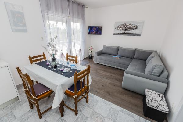Apartment Nina ligt op 3 minuten lopen van de lange zandstranden, cafés en restaurants aan zee. Het ligt in de directe omgeving van de markt (100m), een apotheek (200m) en een busstation (100m). Bezoek ons appartement Nina, je hebt je eigen parkeerplaats, een eigen ingang en alles Appartement Nina beschikt over een keuken met een vaatwasser, een eethoek en een woonkamer met een slaapbank, een tv en airconditioning, een hal die leidt naar 3 slaapkamers en 1 gedeelde badkamer met een wasmachine en een groot balkon dat u vanuit de woonkamer en vanuit de slaapkamer kunt binnenkomen. derde Elke kamer is geschikt voor 2 personen: Kamer 1 .: 2 x eenpersoonsbedden Kamer 2: 1 x tweepersoonsbed Kamer 3 .: 1 x tweepersoonsbed (met balkon) Woonkamer: 1 slaapbank (voor 2 personen)