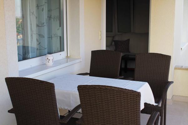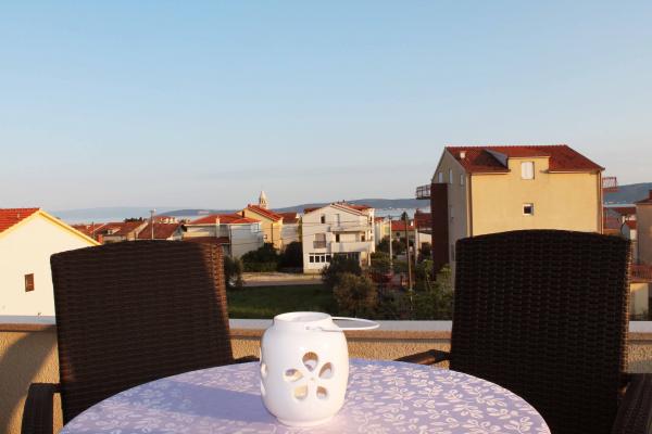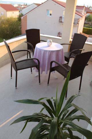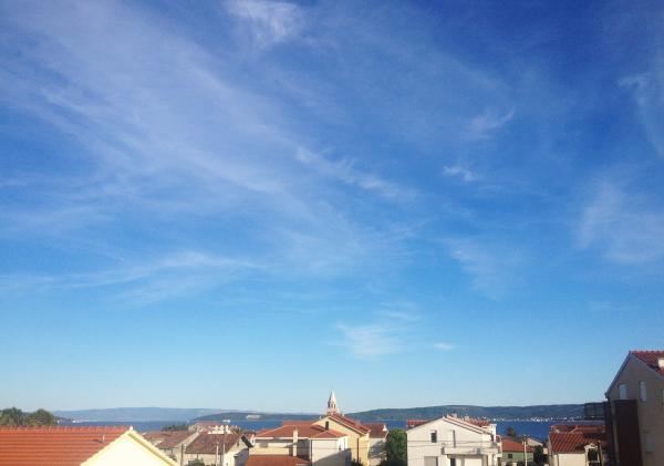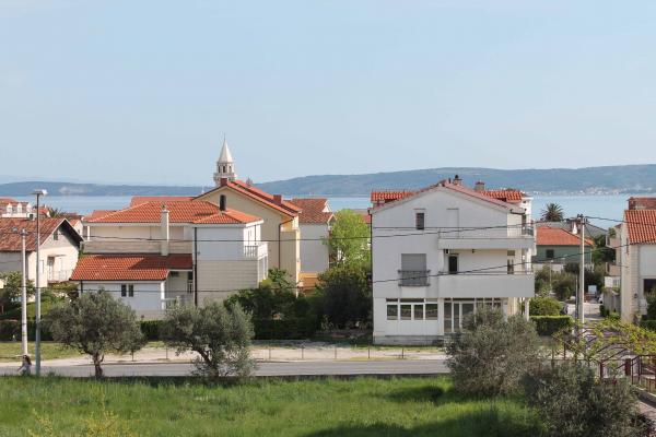 Apartment **** is gelegen op de tweede verdieping van het huis. Ruime en moderne appartement heeft een prachtig uitzicht over de zee en het centrum (cca350-400m) .In de omgeving is het strand (400m), postkantoor (300), het busstation (37 schuur Split-Trogir cca250m), supermarkt (100m) Doctor (60m) .. Het huis heeft een overdekt terras, barbecue en gazon ideale plek om te socialiseren en te ontspannen.