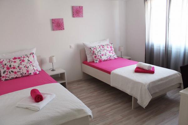 Dit was mijn 4e reis naar Kroatië. In totaal, sliep ik in een tiental appartementen. Nu reden we in twee families bezetten twee appartementen. Beide zijn nieuw. Ruim. Schoon en zeer mooi ingericht. De appartementen zijn verbonden door een gedeelde balkon. Geen defecten. Iedereen (inclusief kinderen) waren erg blij. Een goed uitgangspunt voor het verkennen van het centrum van Dalmatië. Trouwens, is het onmogelijk om niet te wijzen dat een voordeel suites zijn geweldige gastheren. Zeer aardige en behulpzame mensen. Eerlijk gezegd raad ik aan iedereen, vooral omdat de prijzen zijn ook zeer concurrerend.