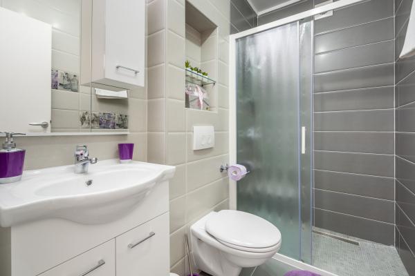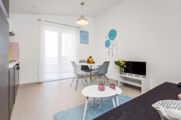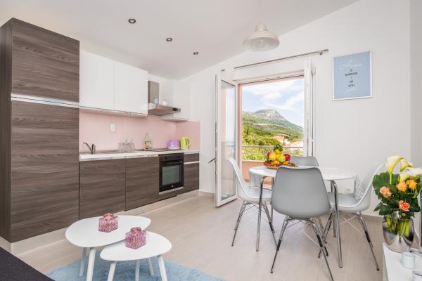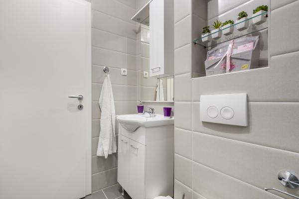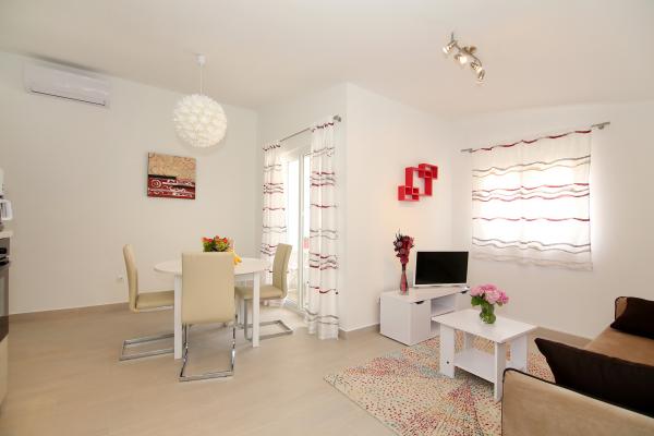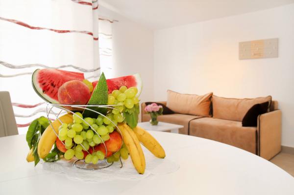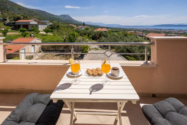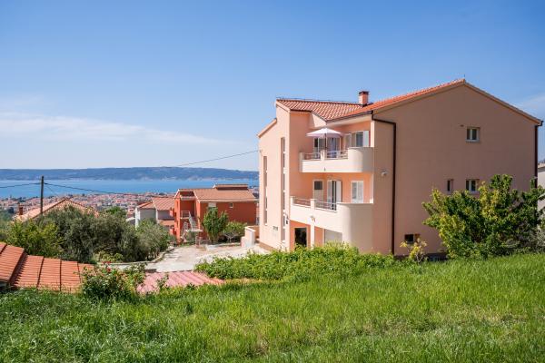 Gloednieuw appartement gelegen in Kastel Stari tussen twee UNESCO beschermde stad Split en Trogir. Gelegen op de bovenste verdieping van het huis (derde) verdieping biedt een prachtig panoramisch uitzicht. Het interieur is stijlvol ingericht en uitgerust. De ruime woonkamer bestaat uit een grote bank, een keuken, een flatscreen-tv biedt ook een prachtig panoramisch uitzicht met een groot balkon. De badkamer is modern uitgerust met alles wat u nodig heeft. De slaapkamer is ruim met een king size comfortabel bed. Buitenkant van het huis is echt geweldig, biedt een groene tuin vol fruit, groenten en bloemen.