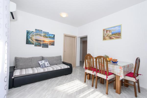 Resnik appartementen zijn gelegen in een rustige omgeving, op slechts 5 minuten van het centrum van de stad. Het is een ideale plek voor diegenen die rust en ontspanning nodig heeft, maar ook voor degenen die op zoek zijn naar andere content-one kan tal van activiteiten en evenementen (culturele evenementen, tentoonstellingen, concerten, vissers avonden etc.) te vinden. Op een afstand van slechts 100 meter van het huis is een mooie kilometer lange strand (grind en zand). Afstand van de stad Trogir, die op de UNESCO-lijst van World Heritage Sites is slechts 10 minuten, en als je niet een middel van vervoer hebben, busstation ligt op 100m (dienstregeling elke 20min). In de directe omgeving zijn er tal van restaurants en bars en de promenade. Voetbal- en basketbalvelden, tennisbanen en een speeltuin voor beachvolleybal weg SU-100 m. Stad van het kasteel biedt een brede selectie voor alle leeftijden en je zal zeker niet te vervelen. Beschikbaar is, bieden wij gratis parkeren, gebruik van handdoeken en andere benodigdheden die je nodig zou kunnen hebben.