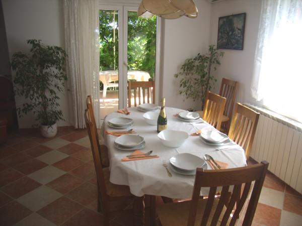 De familie thuis in Kastel Stafilic in het hotel Resnik, biliz Trogir gelegen zijn goed uitgerust twee ruime appartementen. Appartement 1 (6 2) van 120 m2 bestaat uit drie slaapkamers, twee badkamers, een grote levende Borak, keuken, eetzaal en een groot terras met mooi groen in de tuin. Appartement 2 (4 1) oppervlakkige 70 m2 bestaat uit twee slaapkamers, badkamer, woonkamer met keuken. Het appartement heeft een ruim terras met prachtig uitzicht op de baai Kastela. De appartementen zijn gelegen op 80 meter van de zee en de omgeving is er een hotel restaurant en tennisbanen .. Gasten kunnen een barbecue, een tuin voor de kinderen en parkeerplaatsen te gebruiken.