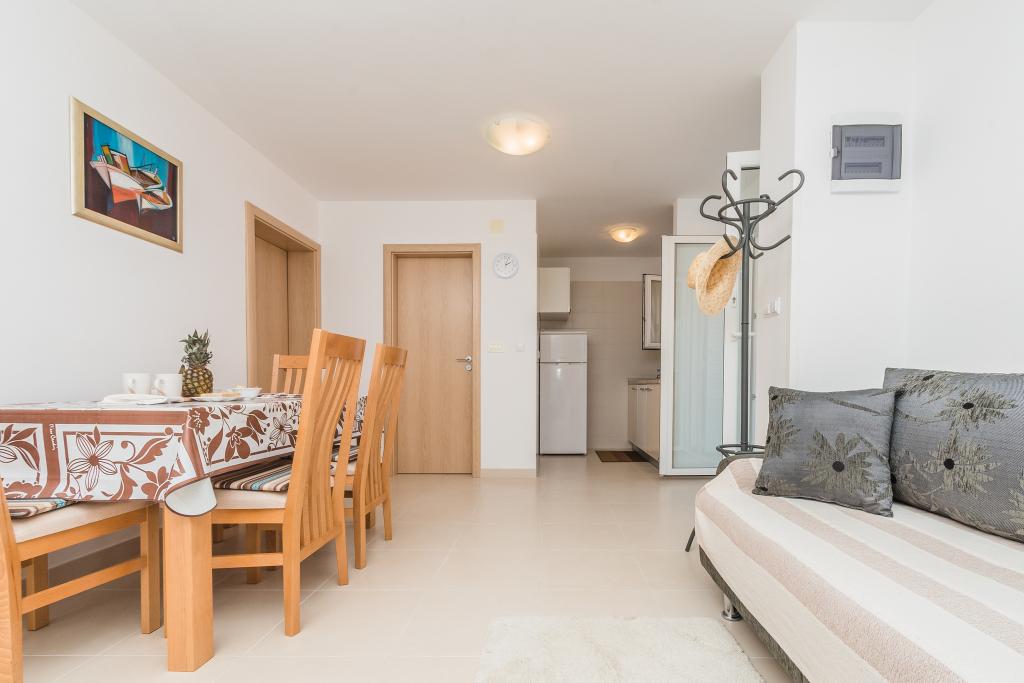 In het dorp Klimno, een huis met 4 appartementen op een rustige en zonnige locatie, in een doodlopende straat. Afstand van de zee 200 m. De stranden zijn kiezel- en rotsachtig. Voor medegebruik van percelen van 400 m2. Beschikbare buitendouche, ligbedden, grill, terras 60 m2, tafel en bank. 1 parkeerplaats per appartement. Appartementen Fenix 1 en Fenix 2 bevinden zich op de bovenste begane grond, en appartementen Fenix 3 en Fenix 4 bevinden zich op de eerste verdieping.