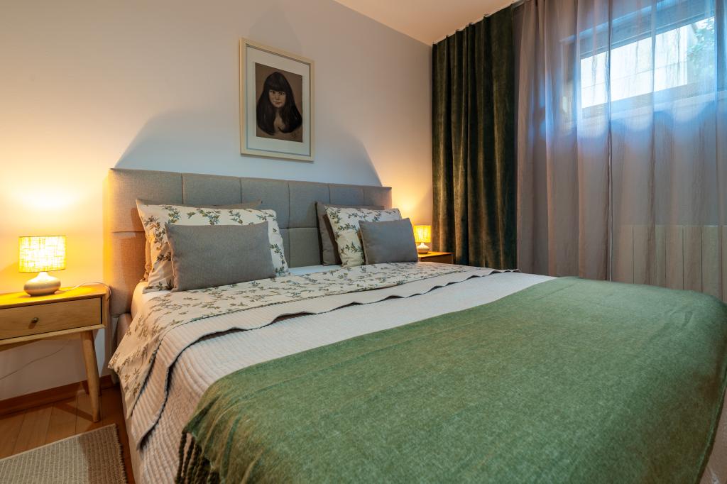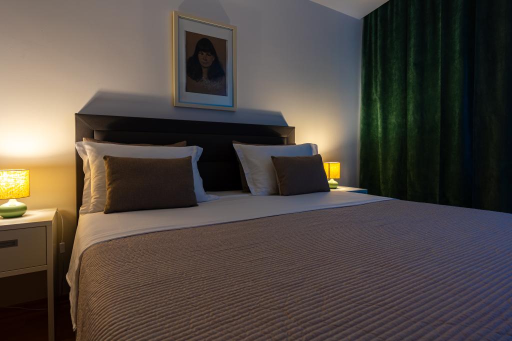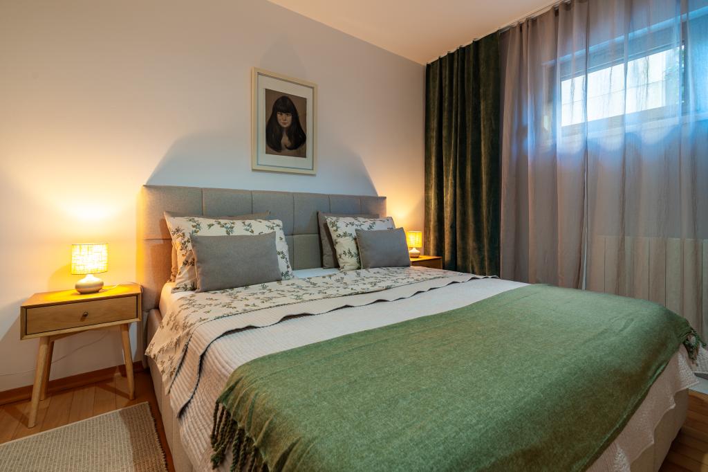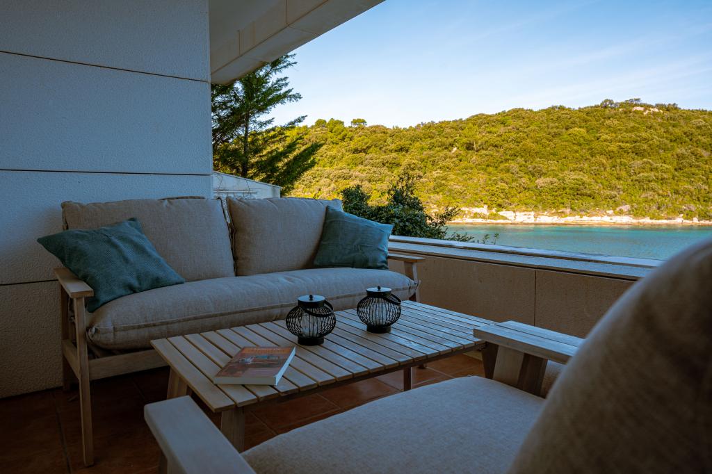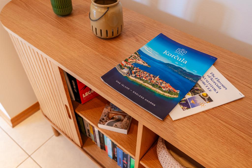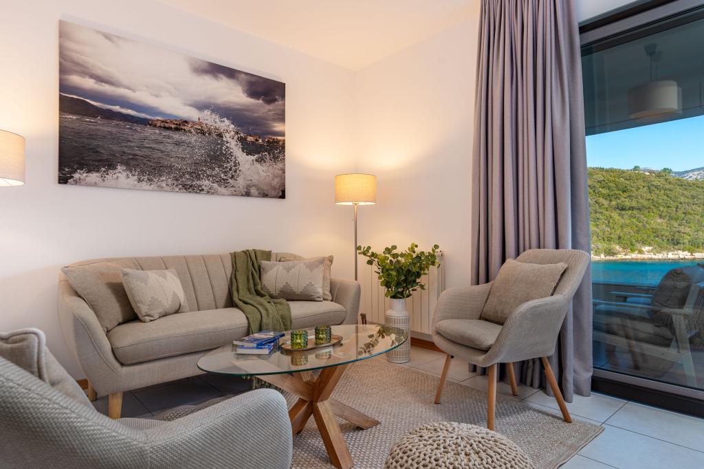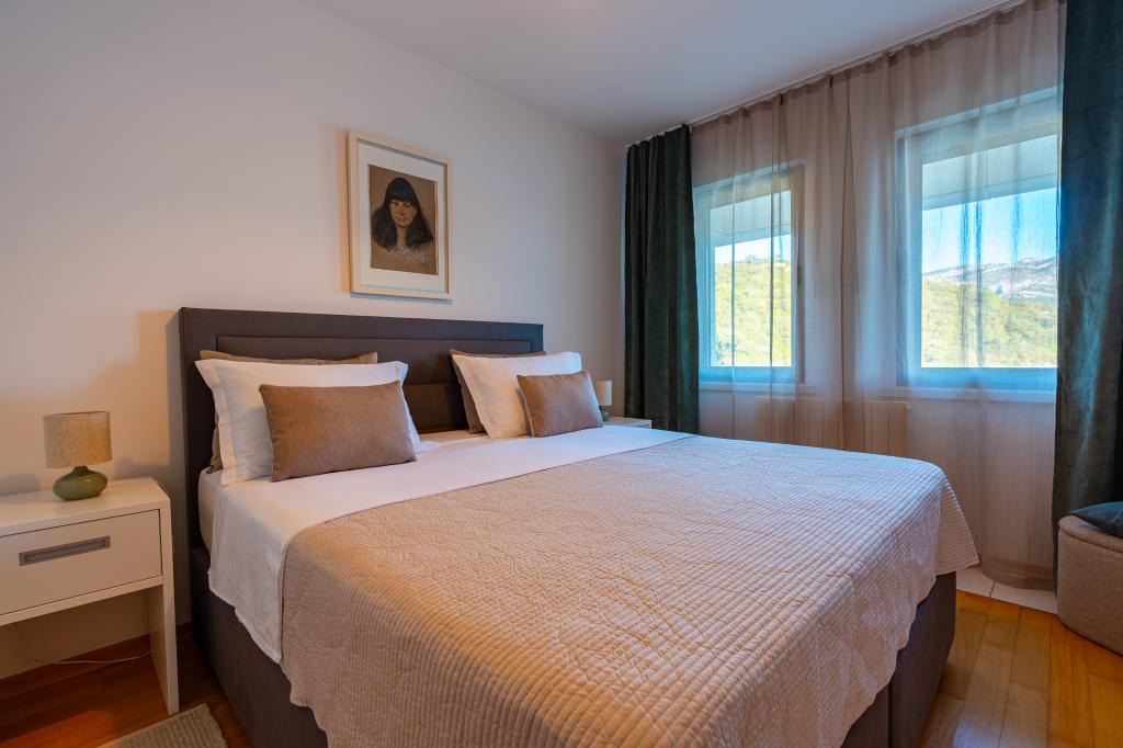 Villa Avantgarde - appartement direct aan zee voor 4 personen - zeer rustige baai - eiland Korčula - Kroatië Het is het werk van een beroemde Kroatische en wereldberoemde architect. Het ligt in een rustige baai, ca. 4 km van het stadscentrum. In de villa beschikt u over een comfortabel appartement van ca. 100 m2, bestaande uit 2 slaapkamers, een badkamer en een woonkamer met een goed uitgeruste keuken, eetkamer en woonkamer, van waaruit toegang is tot een ruim terras met directe toegang tot het privéstrand. Het strand ligt op 9 meter van het appartement. Er is slechts één appartement te huur in de Villa. Het wordt omgeven door verzorgde gazons, groen, vogelgezang en de zee. Er is afgesloten privéparkeergelegenheid beschikbaar voor gasten. De slaapkamer, woonkamer, eetkamer en terras kijken direct uit op zee. Het kan het hele jaar door gebruikt worden, omdat het voorzien is van centrale verwarming.