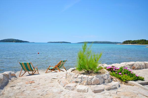 Krapanj is het laagste en het kleinste bewoonde eiland in de Middellandse Zee, kan op slechts 300 meter van het strand en 1,5 m hoog. Alle Krapanj en de bewoners en hun leven en de lange geschiedenis te zien en te ontdekken in de kerk het klooster, waar vele tentoonstellingen houdt, en werd gebouwd in de 16e eeuw. Voor wie op zoek is naar een rustige en aangename samenleving, Krapanj is de perfecte plek met zijn stranden en het heldere water, en rijke keuken in tavernes. De verbinding met het vasteland door een boot die elk uur en Krapanj nog aantrekkelijker plaats vaart voor een vakantie, want het kan altijd snel alle gemakken van de stad en het vasteland te bereiken, en net zo snel terug te keren op het eiland idylle. Volledig ingericht vakantiehuis met de buitenkant van de inwoners van het eiland, oriëntatie zuid-west uitzicht op de eilanden en de Sibenik archipel, afstand van de zee is 10 m, heeft een slaapkamer en een keuken, badkamer, in de voorkant van het huis is een tuinhuisje gemaakt van hout en bedekt met palmtakken vanwege gevoelens verbinding met de natuur en de mediterrane sfeer.