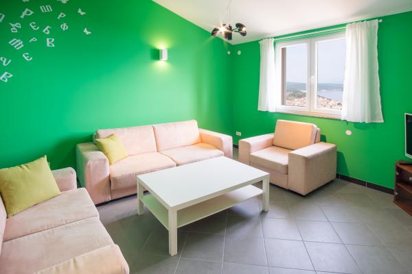 Het appartement is gelegen op de 1e verdieping, gelegen in een rustige aantrekkelijke locatie, heeft een overdekt terras met een prachtig uitzicht op de zee en de oude stad. Slechts 10 min. lopen naar het centrum en de stranden in de buurt voor ieders smaak. Wij helpen u graag adviseren waar te gaan op de reis, diner of uit te gaan. Wij verheugen ons op uw komst!