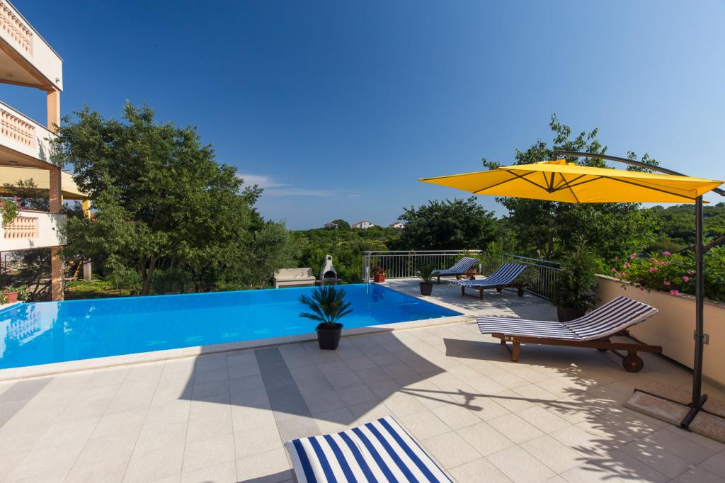 Dit prachtige appartementencomplex biedt de perfecte combinatie van comfort, privacy en ontspanning. Op de ruime binnenplaats vindt u een zwembad, ideaal om te genieten van warme zomerdagen, en een aangelegde tuin met barbecue, perfect voor familiebijeenkomsten en gezellige avonden met vrienden. Het huis is modern ingericht en beschikt over 4 appartementen en een studio. De appartementen zijn functioneel ingericht, met een ruime woonkamer, comfortabele slaapkamers en een volledig uitgeruste keuken. De rustige ligging en de omheinde tuin garanderen volledige privacy, waardoor dit huis een ideale plek is voor vakantie, wonen of verhuur. Een combinatie van natuur, comfort en luxe - de perfecte plek om te ontsnappen aan de dagelijkse sleur.