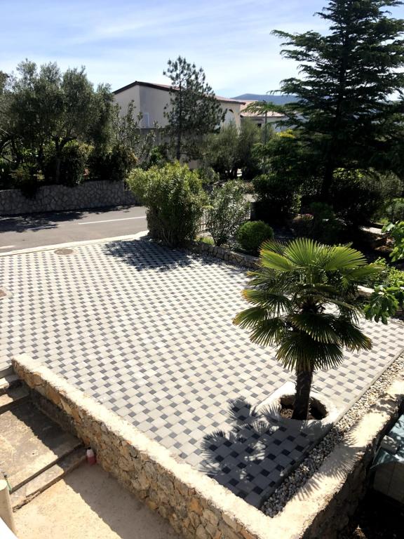 Eengezinswoning met 2 grote appartementen 80m2 omgeven door groen met vriendelijke gastheren. Rustig deel van Krk met gezinswoningen. De familie huurt al meer dan 30 jaar. Het bovenste appartement bevat een groot terras met een prachtig uitzicht, keuken en eetkamer, woonkamer, 2 slaapkamers en een badkamer. Het lager gelegen appartement bevat een terras in de schaduw, keuken en eetkamer, woonkamer, 2 slaapkamers en een badkamer. De faciliteit ligt op 10 minuten lopen naar de zee. Dicht bij winkels, restaurants en benzine ligt op 3 minuten lopen. Priveparkeren. .