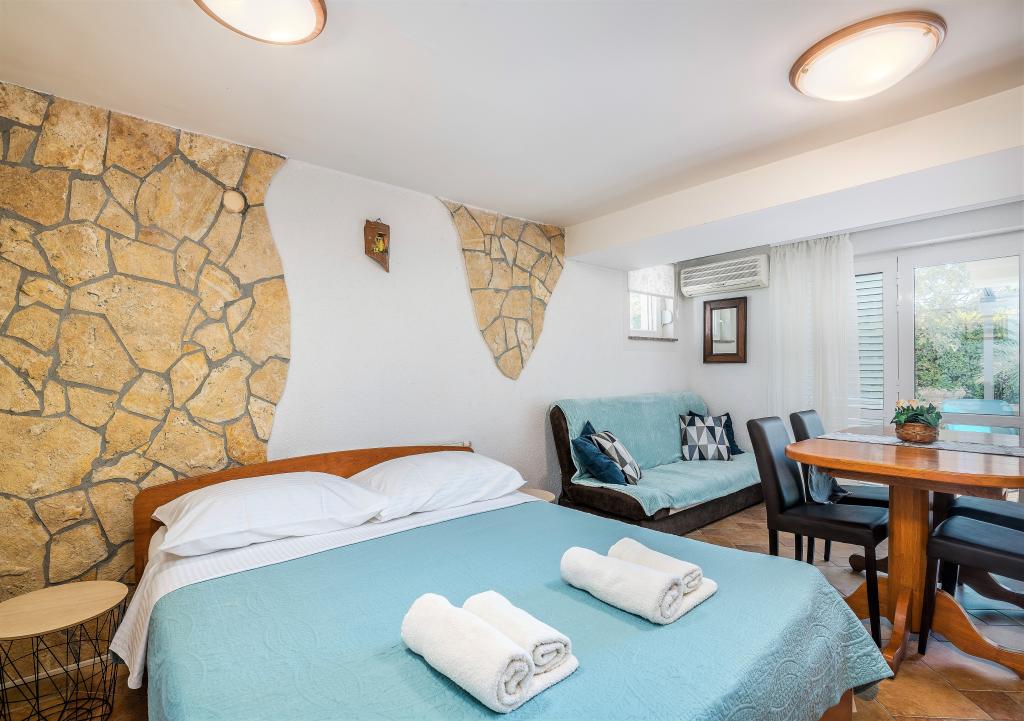 Het huis is gelegen in het centrum van de stad Krk. Elk appartement heeft een eigen parkeerplaats. Het huis heeft een barbecue en een tafel om te socialiseren, die bedoeld is voor alle appartementen. Huisdieren zijn toegestaan, na voorafgaande toestemming van de eigenaar.