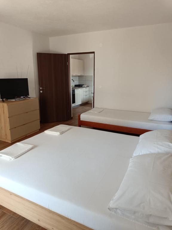 Leonard Apartments Wij zijn gevestigd in het kleine en rustige stadje Kustići! Wij bieden nieuwe en volledig uitgeruste appartementen met parkeergelegenheid. Elk appartement beschikt over airconditioning, wifi, beddengoed, tv, volledig uitgeruste keuken en terras. Het strand ligt op 20 meter afstand en winkels, restaurants en een bakkerij bevinden zich in de buurt van de appartementen! De stad Novalja ligt op 6 km afstand! Wij hebben ook aanlegsteigers voor boten op 20 meter afstand van het appartement!