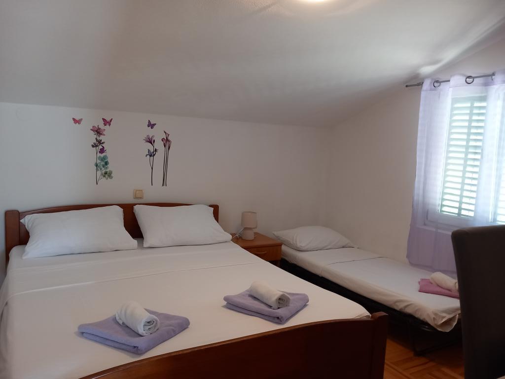 Apartments Mira bevindt zich in een gezinswoning en biedt accommodatie voor maximaal 15 personen in 3 appartementen. We zijn gevestigd in een rustige buurt, bijna aan het einde van een doodlopende weg, en alle essentiële voorzieningen (winkel, bakker, geldautomaten, apotheek, restaurants, postkantoor, cafés...) liggen op 10 minuten lopen . We hebben gratis parkeergelegenheid in de buurt van het huis en 2 kinderspeelplaatsen. De appartementen beschikken over een wasmachine en bergruimte op de begane grond (voor kinderwagens of fietsen). Alle appartementen hebben Smart TV's met onbeperkt Netflix :)