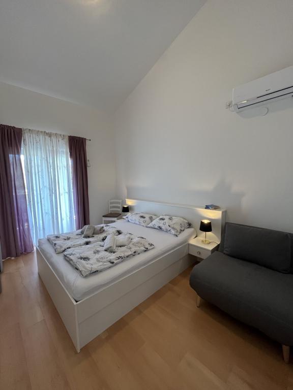 Modern ingerichte appartementen, gelegen op de eerste rij aan zee. De appartementen bevinden zich op de eerste en tweede verdieping. Ze hebben slaapkamers met een tweepersoonsbed. Ze bestaan uit een volledig uitgeruste keuken (oven, fornuis, waterkoker, koelkast, broodrooster, vaatwasser), eetkamer en woonkamer, en een badkamer met douche. Tijdens uw verblijf kunt u op het balkon genieten van het prachtige uitzicht op zee terwijl u 's ochtends koffie drinkt. U kunt gebruikmaken van een gemeenschappelijke tuin, een speeltuin en een barbecue. Er is parkeergelegenheid naast het gebouw. Het gebouw ligt op 2 minuten lopen van het strand en op 2 minuten lopen van de eerste winkel en restaurant. Het centrum ligt op 15 minuten rijden met de auto. Rab is echt een vrolijk eiland met veel kleine, pittoreske baaien, bijna 125 jaar geleden tot op de dag van vandaag door toeristen van over de hele wereld erkend vanwege de kristalheldere, warme en ondiepe zee. Ideaal voor een vakantie voor het hele gezin.