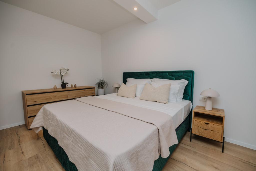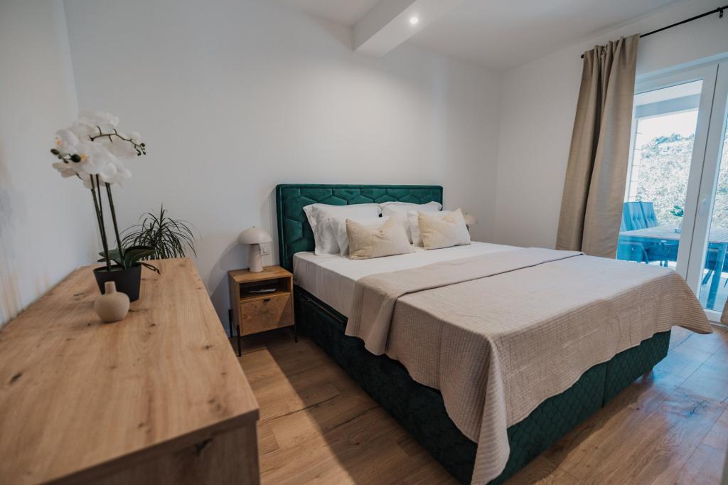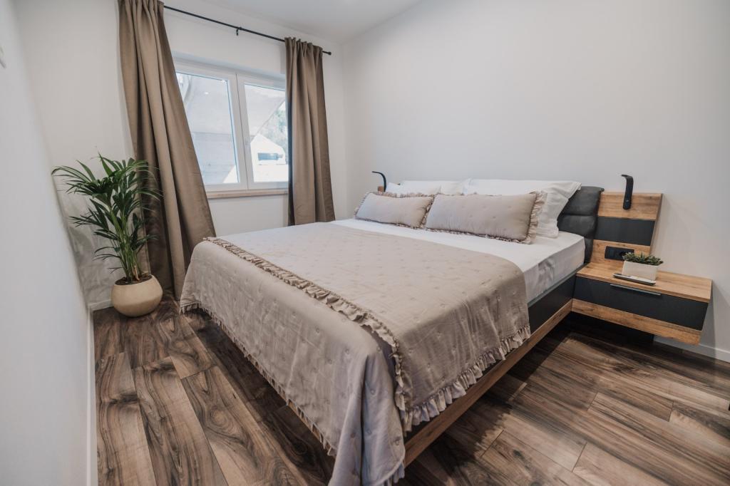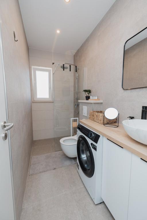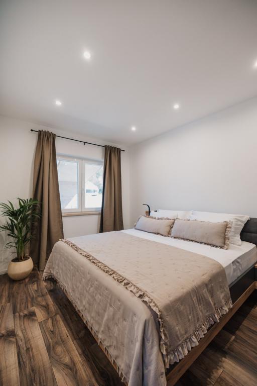 Een onlangs gerenoveerd en modern ingericht appartement is te huur in Lumbarda op het eiland Korčula. Het appartement is gelegen in de authentieke ambiance van een ruime olijfgaard en garandeert gasten absolute privacy en rust. Het appartement heeft een woonoppervlakte van 75 vierkante meter en beschikt over twee slaapkamers en twee badkamers. Bijzondere aandacht is besteed aan de buitenruimte, met een groot terras van 35 vierkante meter en een tuin van 100 vierkante meter, ideaal om in alle rust te ontspannen. Het interieur is volledig uitgerust voor een comfortabel verblijf voor vier personen, inclusief een vaatwasser in de keuken, een wasmachine in de badkamer, MaxTV en snel 5G-internet. Voor gezinnen met kleine kinderen is op aanvraag een kinderbedje beschikbaar. De locatie biedt een perfecte combinatie van privacy en nabijheid van alle voorzieningen; de eerste zwembaai ligt op slechts 200 meter afstand, het stadscentrum op 800 meter en de beroemde grote zandstranden op ongeveer 2 kilometer afstand. Gasten kunnen gebruikmaken van een eigen parkeerplaats in het gebouw.