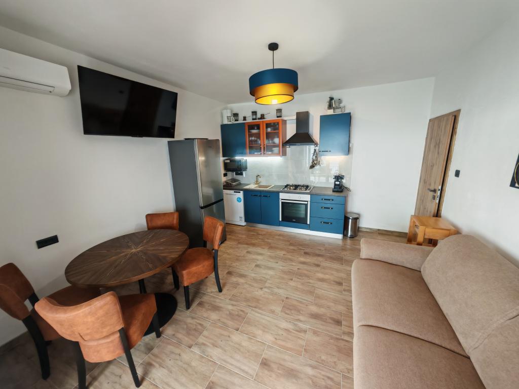 De appartementen liggen direct aan zee met uitzicht op de eilanden Cres en Lošinj, ideaal voor een rustige en ontspannen vakantie zonder veel lawaai en drukte. Ze zijn van alle gemakken voorzien. Het stadscentrum ligt op slechts 300 meter afstand, waar u een winkel, diverse restaurants, een café, een groente- en fruitwinkel en een geldautomaat vindt. Een zandstrand voor kinderen ligt op 200 meter afstand. Voor het huis bevindt zich een kleine groene oase met een rijke moestuin waar gasten zelf groenten kunnen plukken. De appartementen beschikken over een eigen parkeerplaats en een terras met barbecue op de begane grond. Indien gewenst kunnen de eigenaren een chef-kok voor u regelen. Geluidsoverlast is niet toegestaan vóór 9.00 uur en na 23.00 uur. Lun, gelegen in het noorden van het eiland Pag, rijk aan duizend jaar oude olijfbomen, is een uniek gebied in dit deel van de Middellandse Zee. Meer dan 80.000 olijfbomen strekken zich uit over een gebied van 400 hectare. Lun ligt vlakbij Novalja, in de buurt van de eilanden Rab, Lošinj, Cres, Silba en 5 nationale parken. Er is dagelijks een bootverbinding naar Rab.