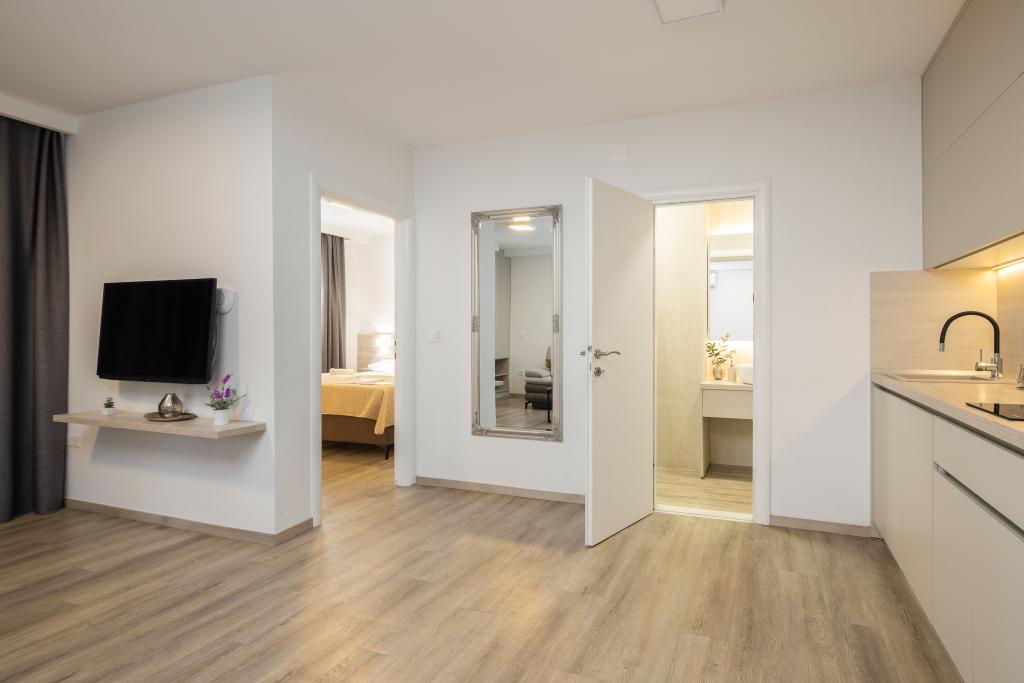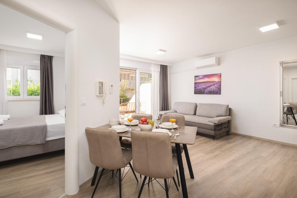 Welkom bij het appartement Adria Mare, gelegen in Makarska, op slechts 50 meter van het belangrijkste stadsstrand en 400 meter van het centrum. Dit moderne en comfortabele appartement beschikt over twee slaapkamers en een ruim terras waar u optimaal kunt genieten. Geniet van de nabijheid van belangrijke bezienswaardigheden, restaurants en bars. Gasten kunnen gebruikmaken van een parkeerplaats.