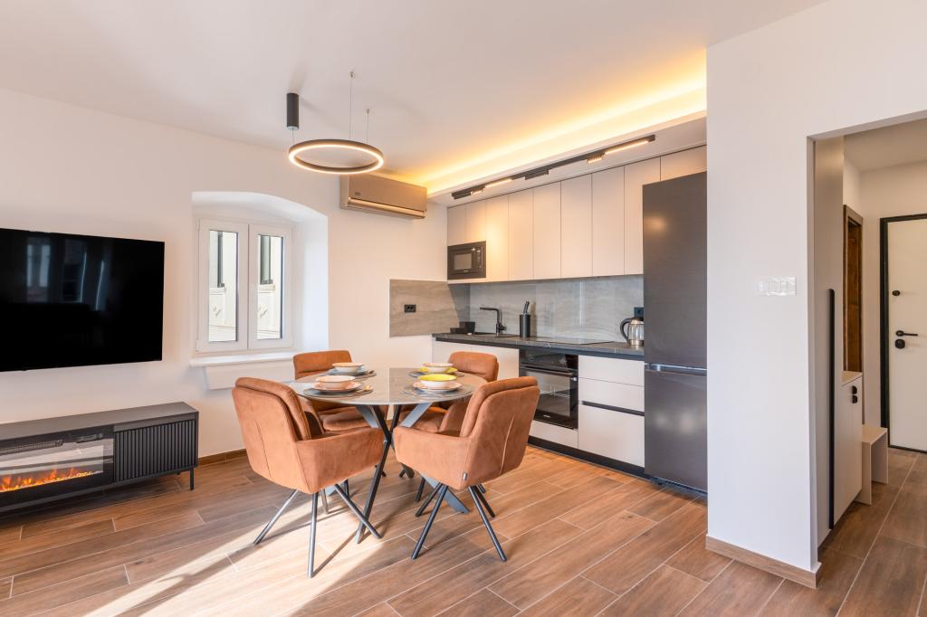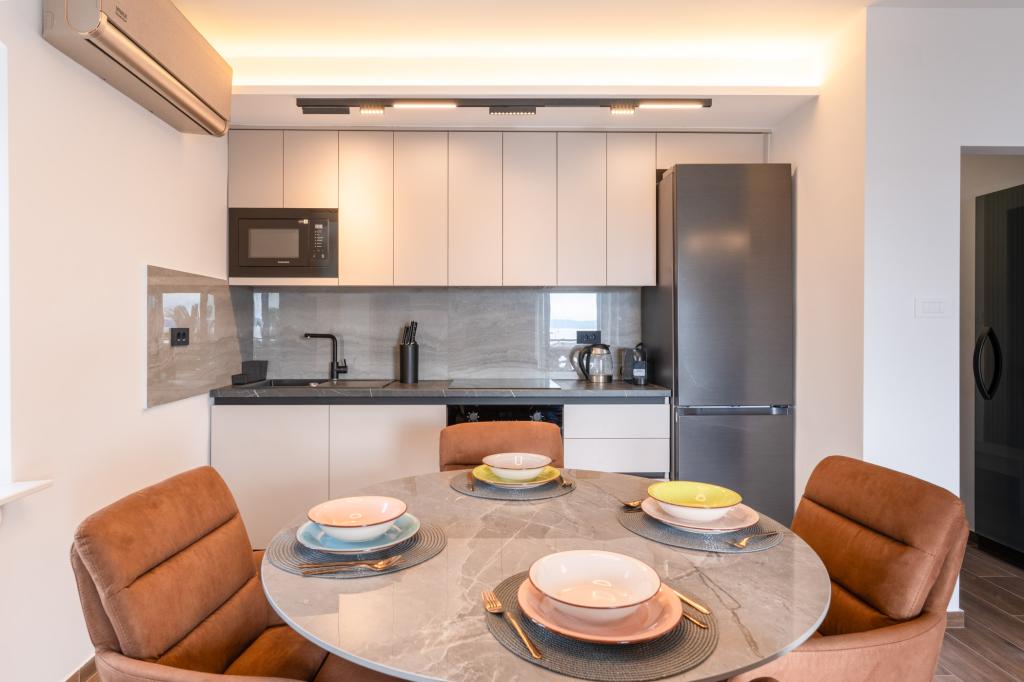 Appartement Azzuro ligt in het hart van Makarska, direct aan het water, en biedt moderne en ruime accommodatie met uitzicht op zee. Het appartement beschikt over een slaapkamer, een badkamer, een volledig uitgeruste keuken en een comfortabele woonkamer met een klein balkon met uitzicht op zee. Dankzij de uitstekende locatie zijn alle voorzieningen zoals stranden, restaurants, cafés en winkels op loopafstand. Een ideale keuze voor gasten die midden in de actie willen verblijven en willen genieten van de levendige sfeer van Makarska, met gegarandeerde ondersteuning van het personeel tijdens hun verblijf.