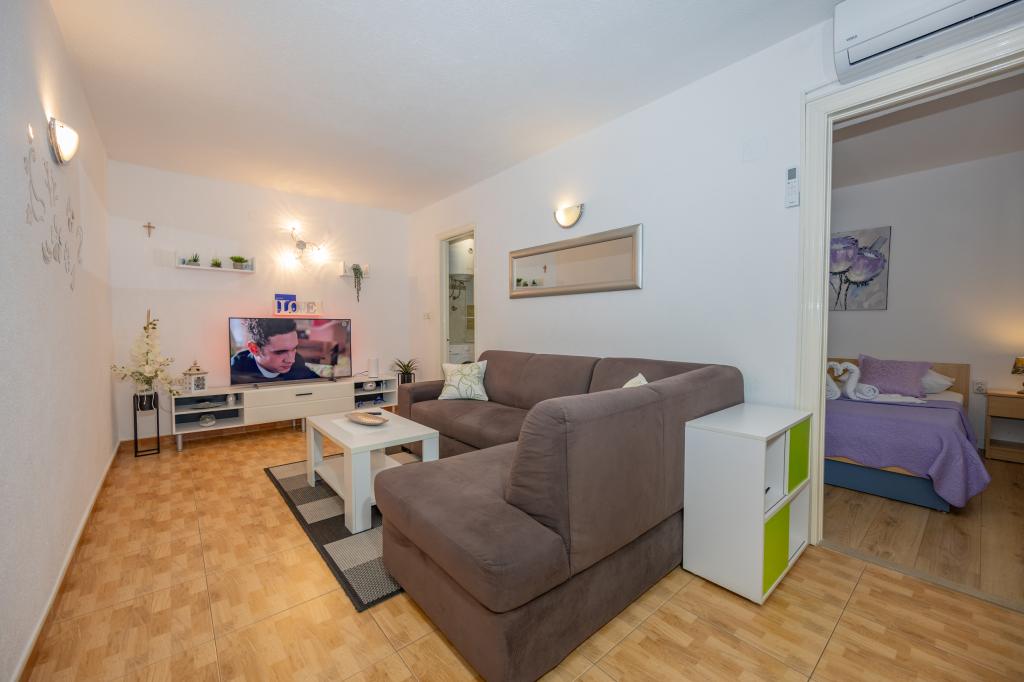 Dit gezellige appartement van ongeveer 40 m² biedt alles wat u nodig heeft voor een aangenaam verblijf. De accommodatie omvat: Slaapkamer met een comfortabel tweepersoonsbed Woonkamer met een slaapbank (geschikt voor 1 volwassene of 2 kinderen), Smart TV en airconditioning Volledig uitgeruste keuken met vaatwasser, magnetron, koffiezetapparaat en waterkoker Badkamer met douche en wasmachine Aan de voorzijde van het huis is er een privéterras met een eettafel. Er is ook een gedeelde barbecueplek tot uw beschikking - ideaal voor ontspannen avonden buiten. Het appartement is perfect voor stellen of kleine gezinnen die op zoek zijn naar een comfortabele en goed uitgeruste accommodatie in een rustige omgeving. Het biedt de ideale combinatie van rust en comfort, maar ligt toch op slechts een paar minuten rijden van het stadscentrum. Geniet van ontspannende momenten of verken het rijke aanbod van de stad met restaurants, cafés en winkels - alles is binnen handbereik. Er is parkeergelegenheid voor twee auto's.