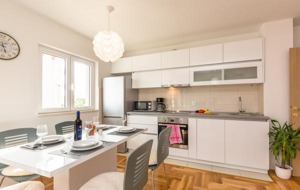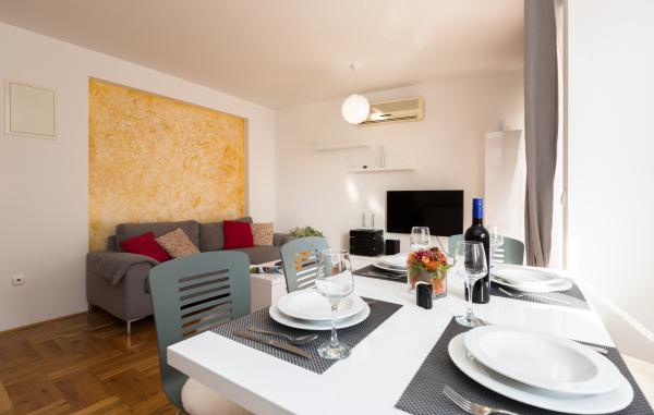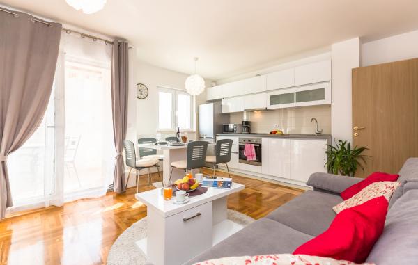 Volledig uitgerust en modern appartement in Makarska. Keuken, 2 slaapkamers, badkamer, woonkamer, terras, parkeerplaats. Het appartement is gelegen in een nieuw gebouw op de begane grond een aparte ingang. Airconditioning, internet inbegrepen in de prijs. Het appartement is gelegen 5min. lopen naar het strand, naar het centrum 10min. te lopen. Beperkt uitzicht op de zee, is het appartement op het zuiden georiënteerd. Log in om te appartement vanaf 15: 00u, check-out tot 10: 00u. Door te kiezen voor ons appartement heeft u de mogelijkheid om elektrische fietsen huren voor recreatie, kan ook dwars bieden vanaf het vliegveld naar Makarska al deze extra kosten.