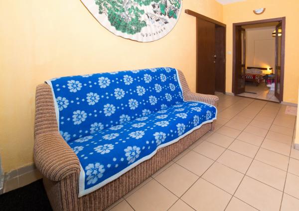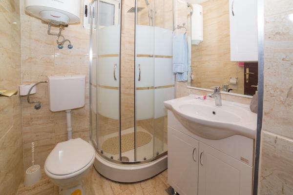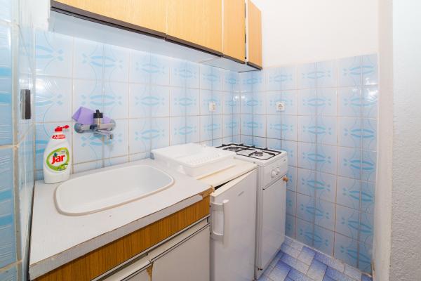 Het huis ligt aan de westkant van de ingang van Makarska. Het is ongeveer. 300 meter. Van het huis naar de zee is er een dennenbos waar er verschillende tennisbanen zijn. Het huis heeft een groot terras met ligstoelen en uitzicht op de zee, de eilanden en de berg Biokovo. Er is ook een barbecue.